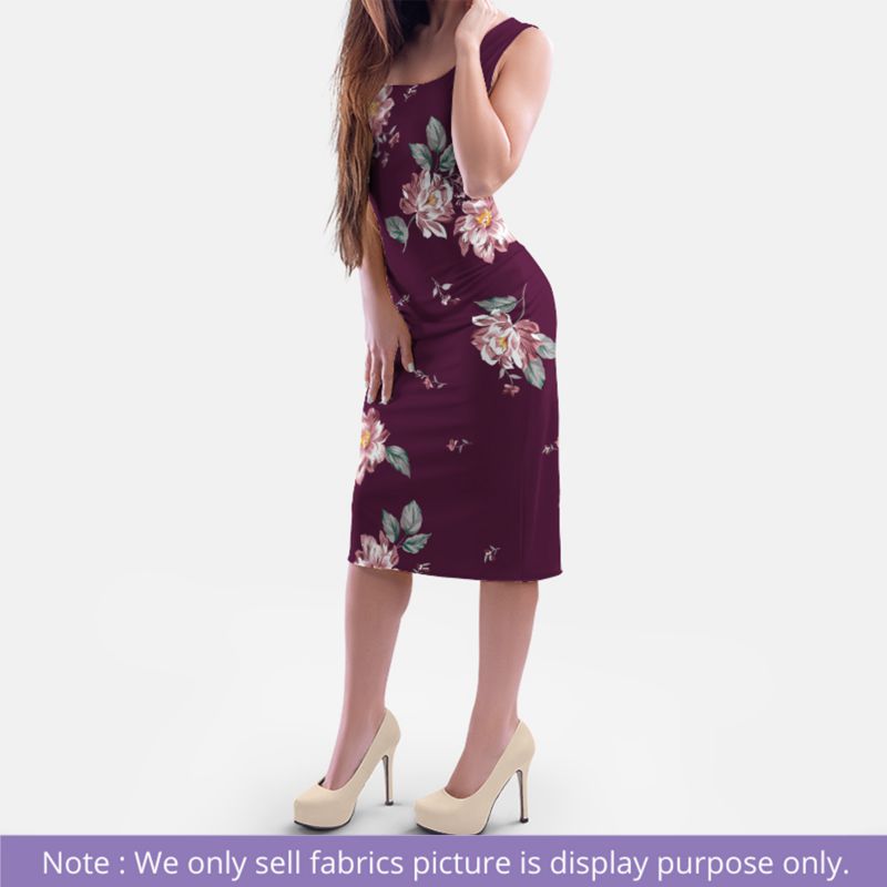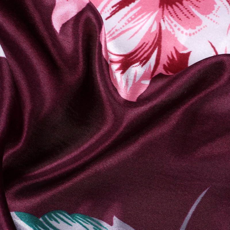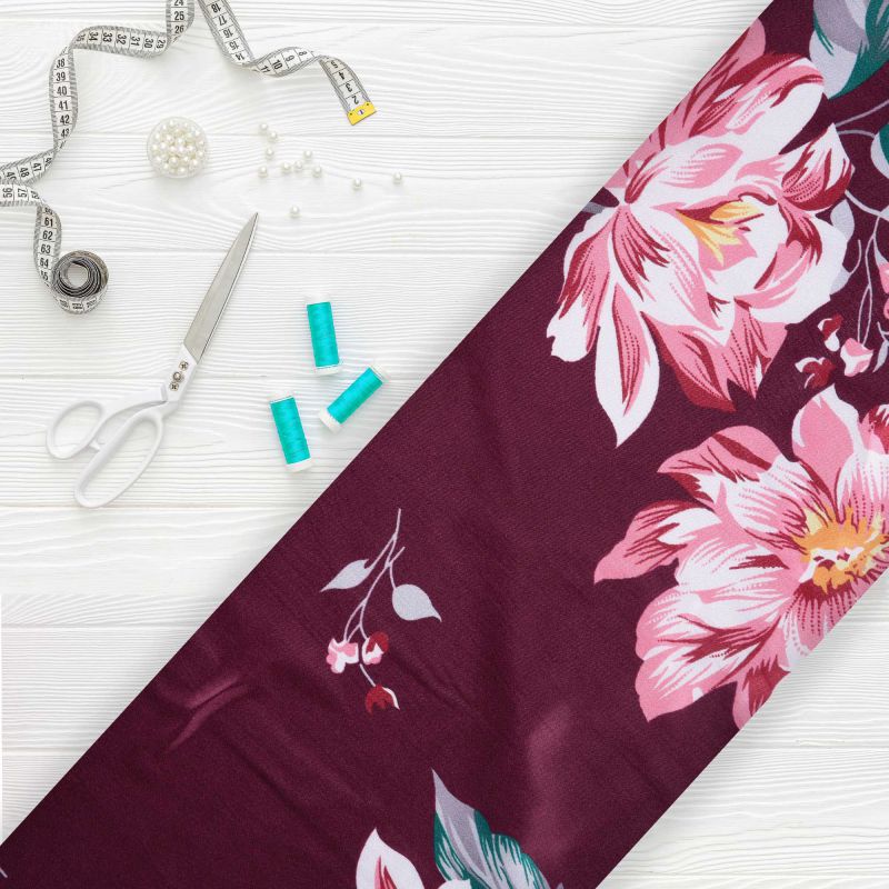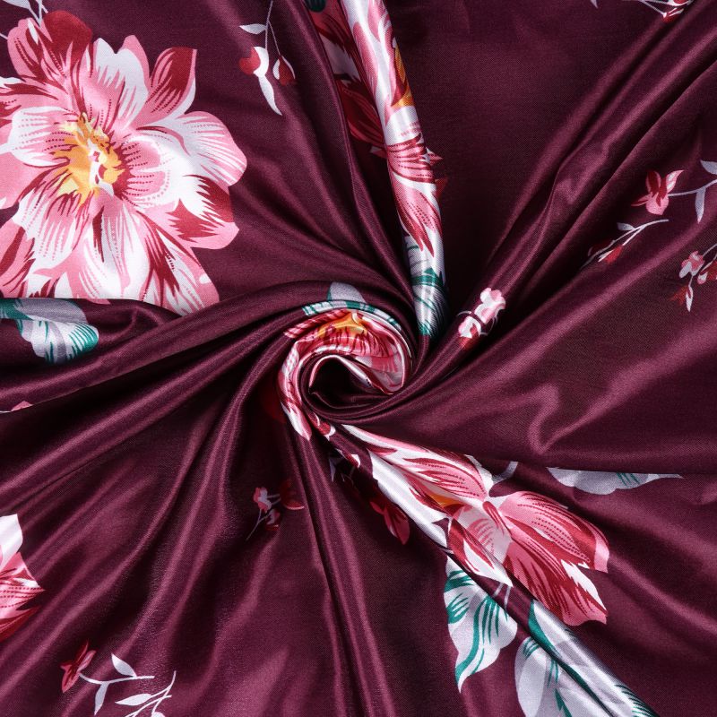 Burgundy And Solid Pink Floral Pattern Digital Print Ultra Satin Fabric