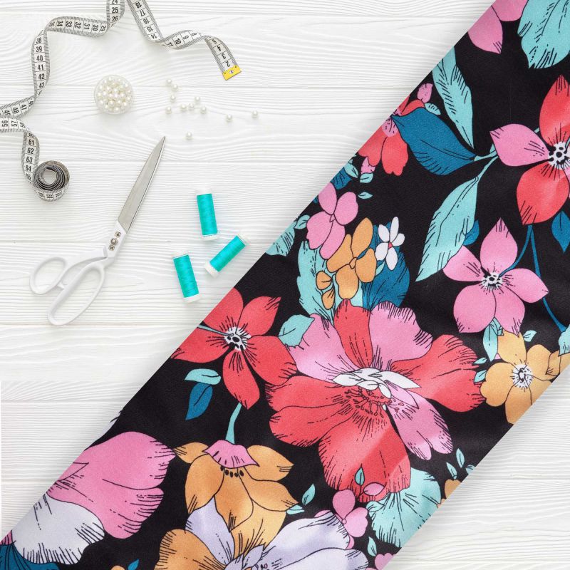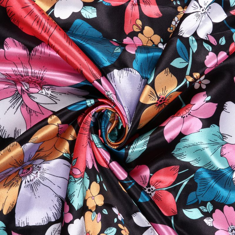Multi Color Floral Pattern Digital Print Ultra Satin Fabric