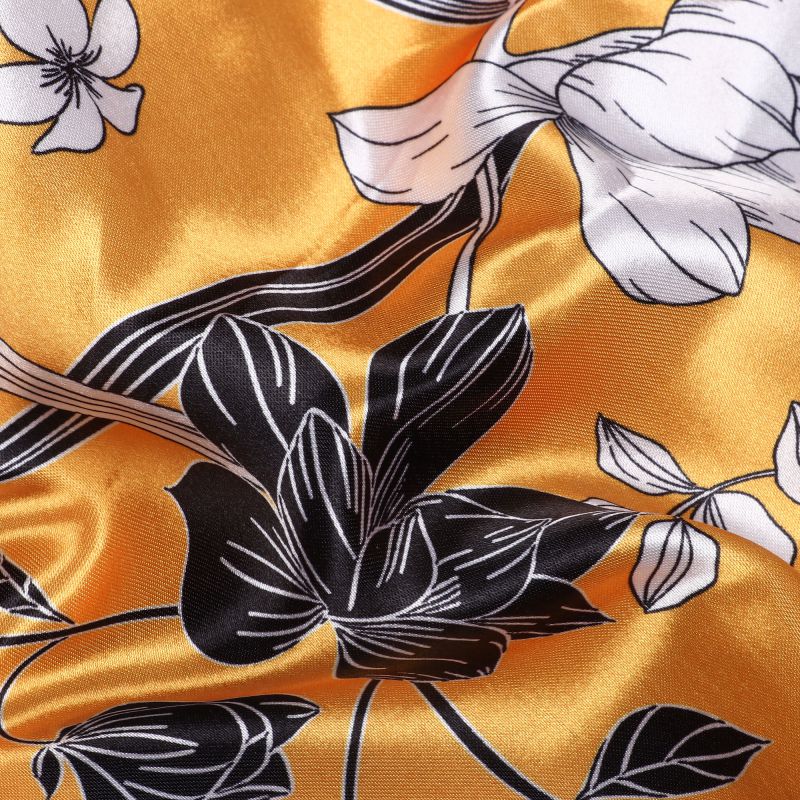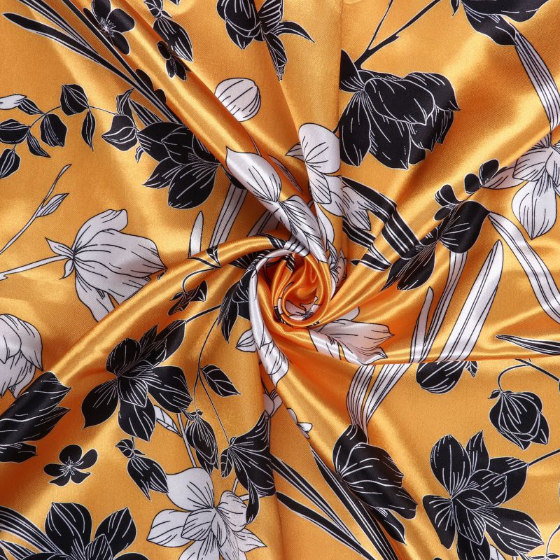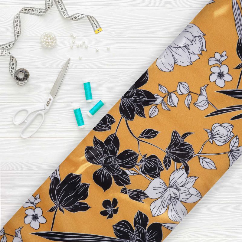 Mustard Yellow And White Floral Pattern Digital Print Ultra Satin Fabric