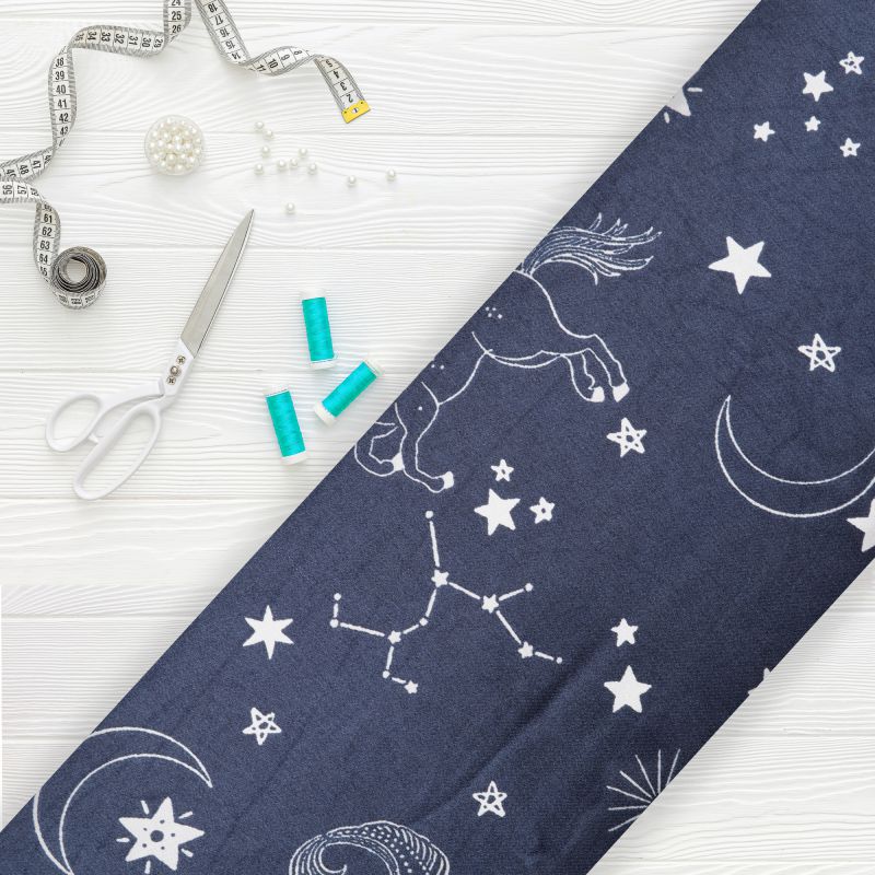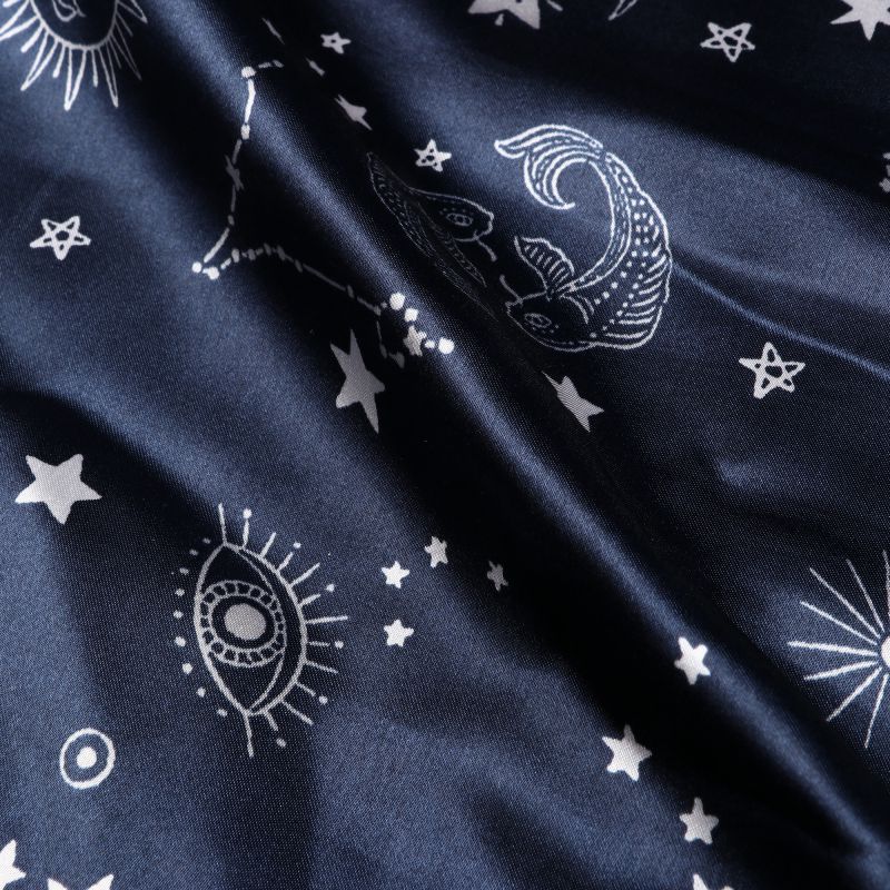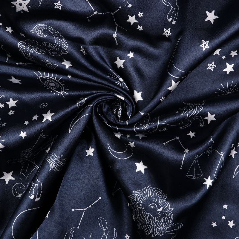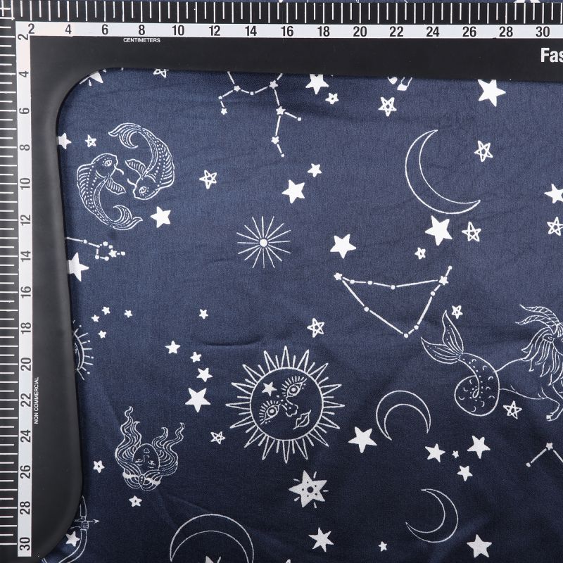 Navy Blue And White Galaxy Pattern Digital Print Ultra Satin Fabric