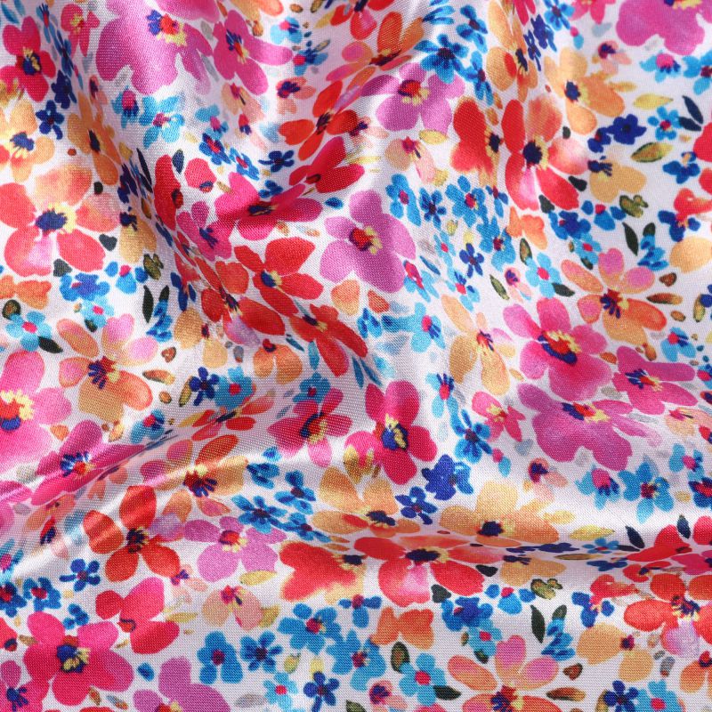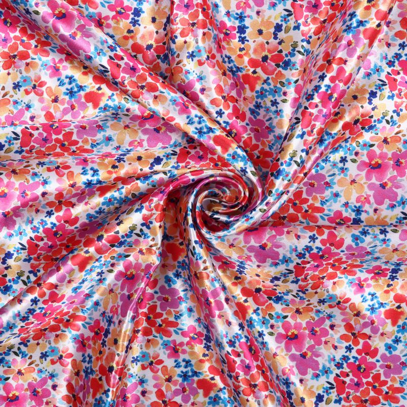 Red And Blue Calico Pattern Digital Print Ultra Satin Fabric