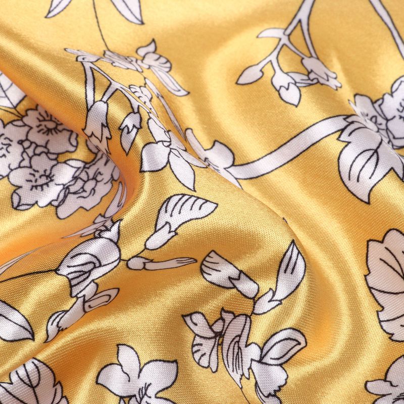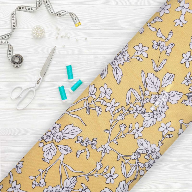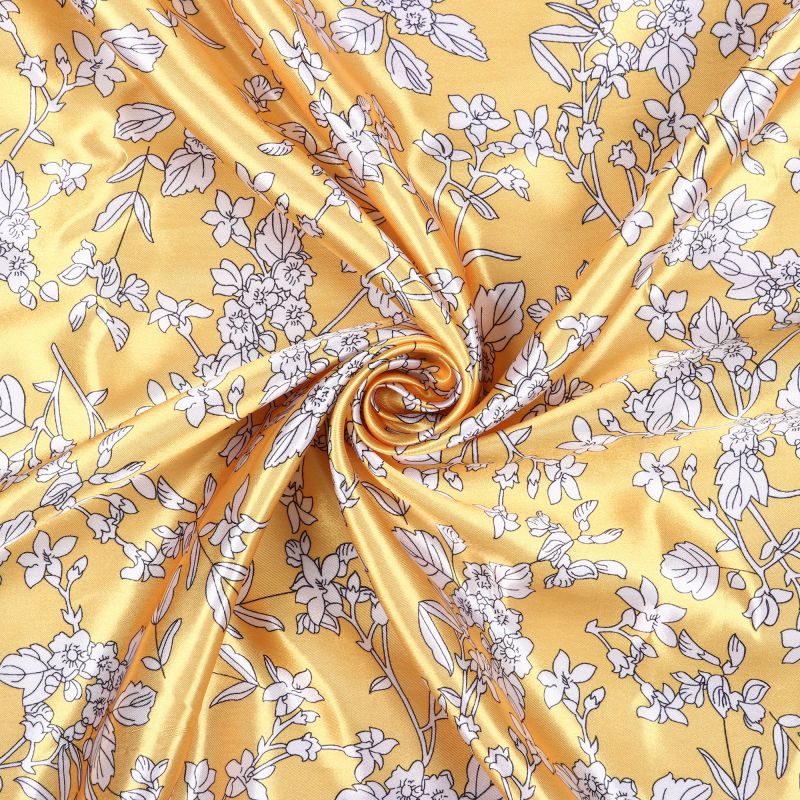 Yellow And White Floral Pattern Digital Print Ultra Satin Fabric