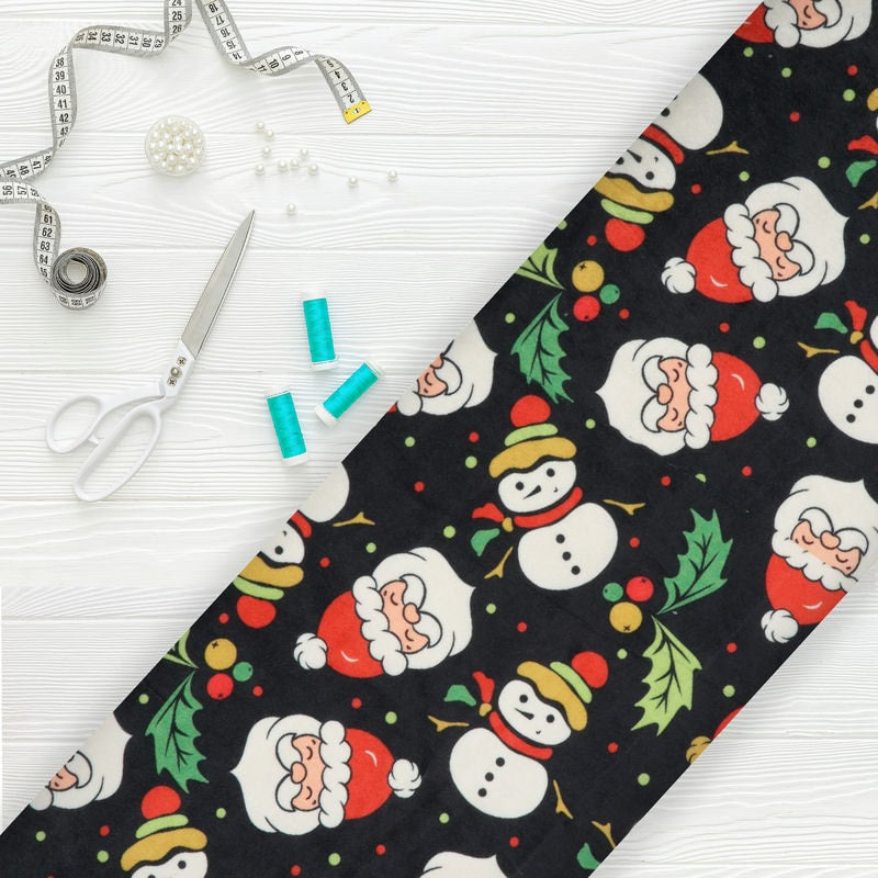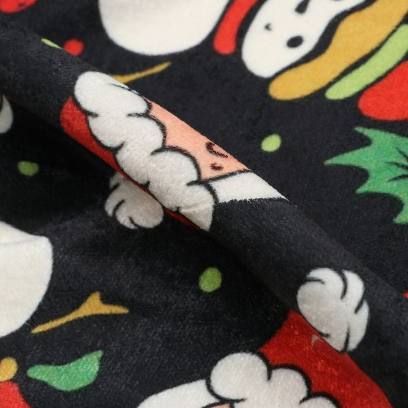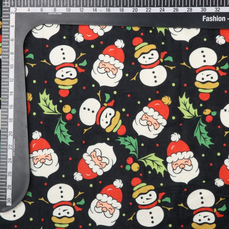 Black And Red Christmas Pattern Digital Print Velvet Fabric