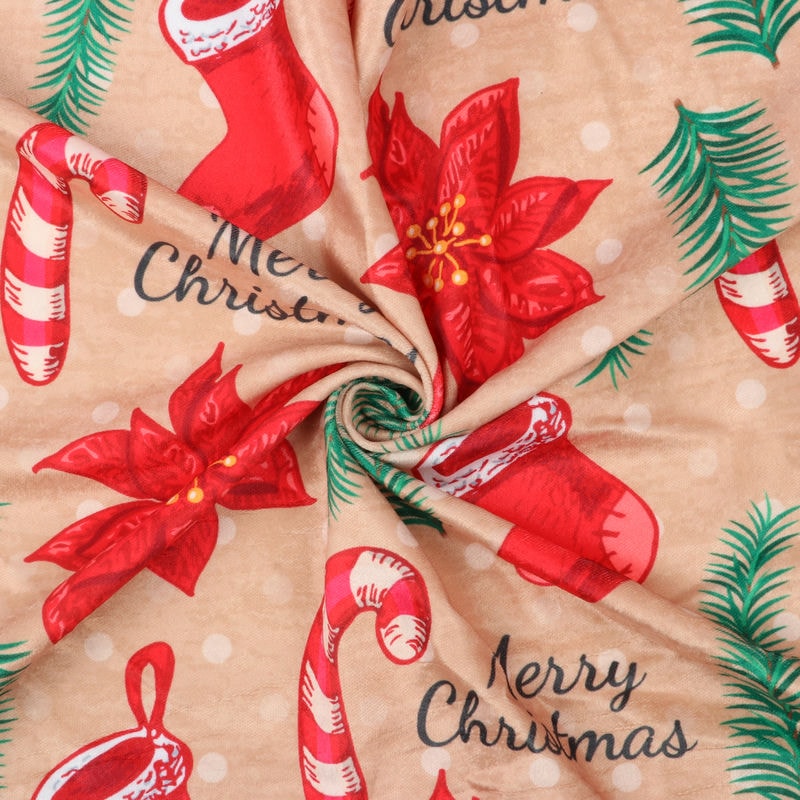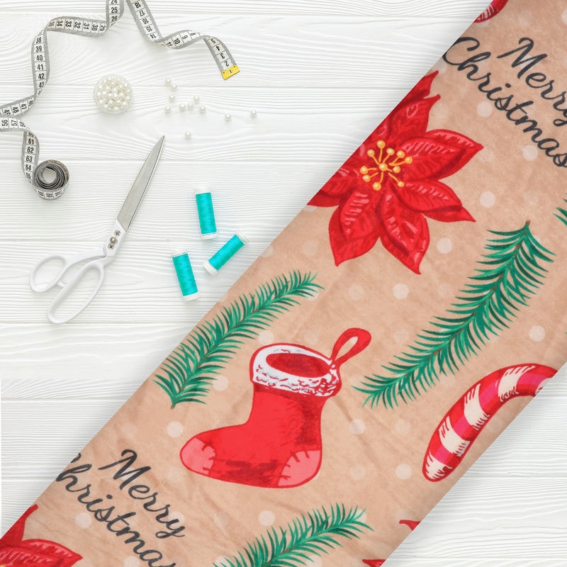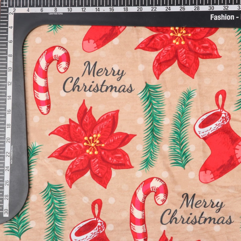 Dusty Orange And Red Christmas Pattern Digital Print Velvet Fabric