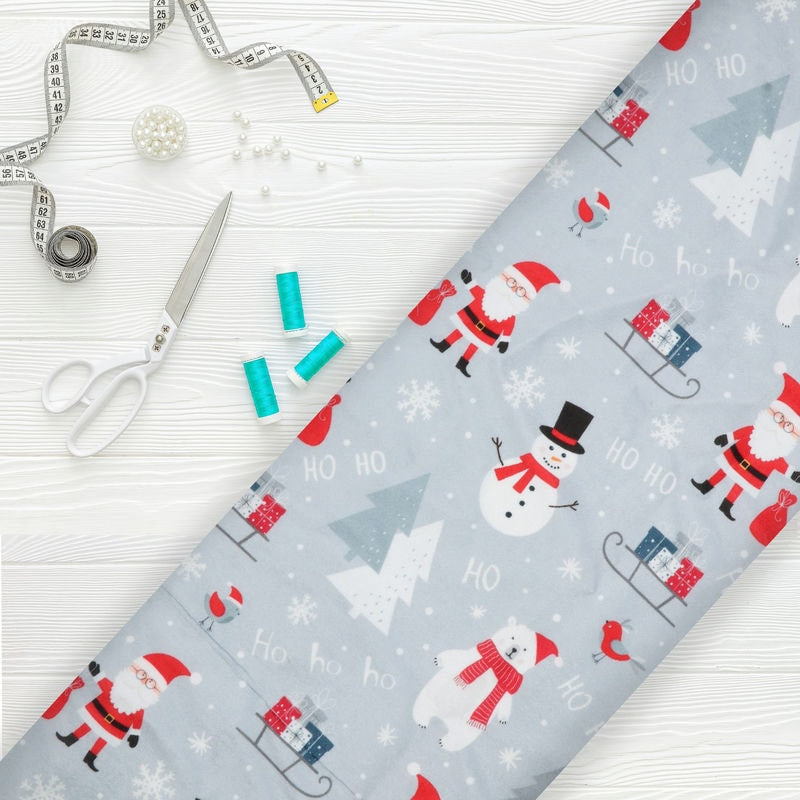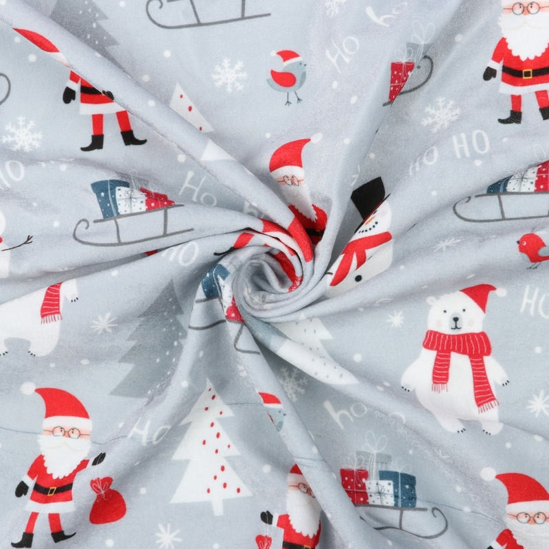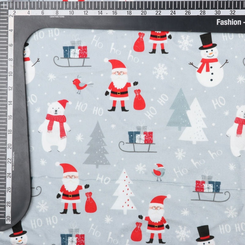 Light Grey And Red Christmas Pattern Digital Print Velvet Fabric