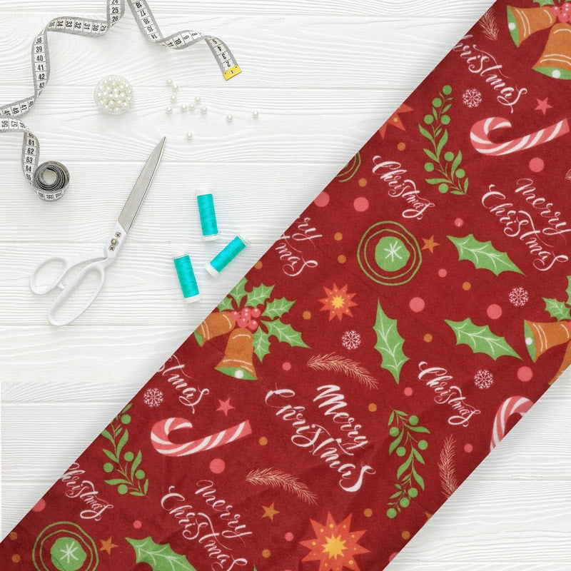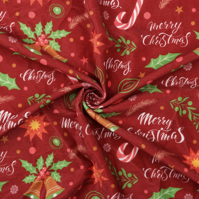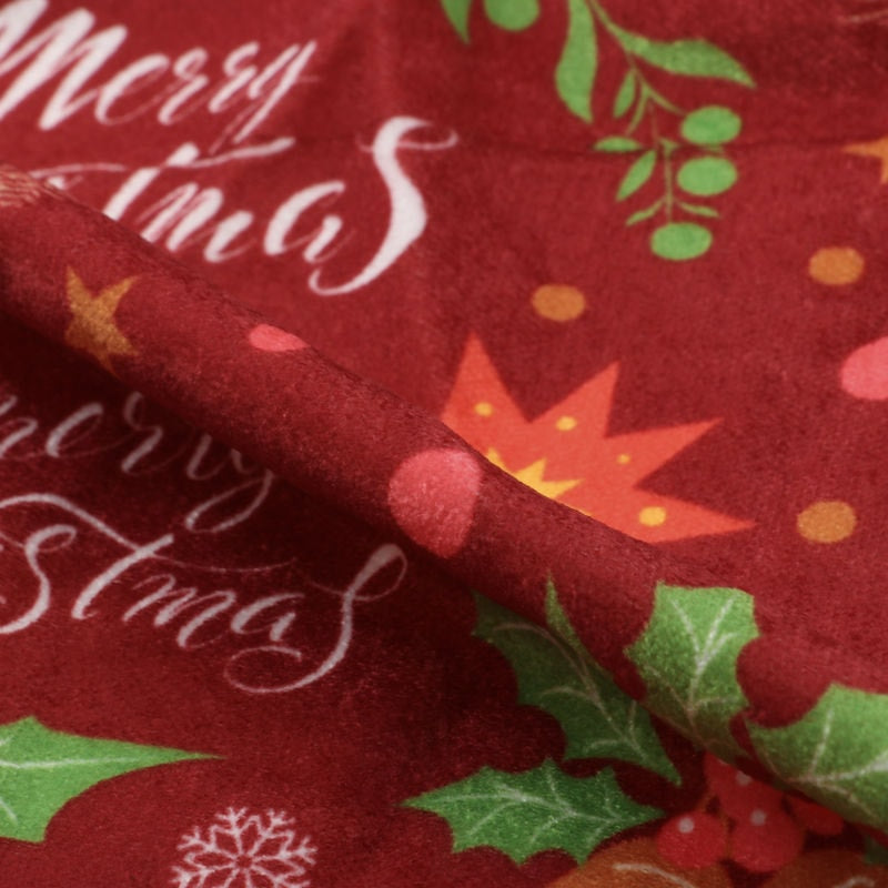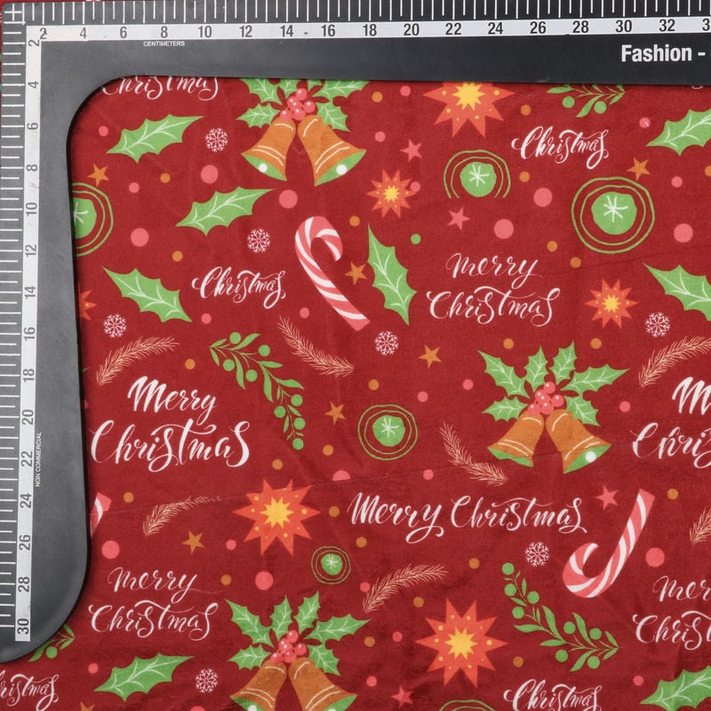Maroon And Green Christmas Pattern Digital Print Velvet Fabric