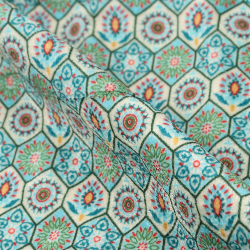 Multi Color Trellis Pattern Digital Print Velvet Fabric