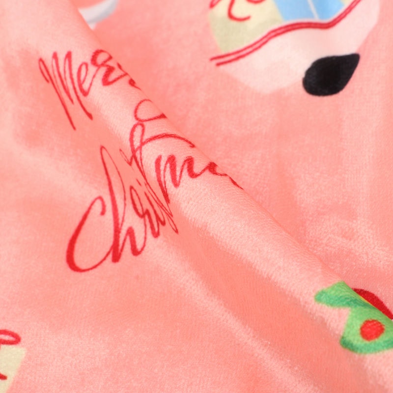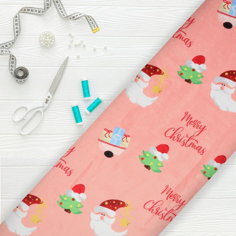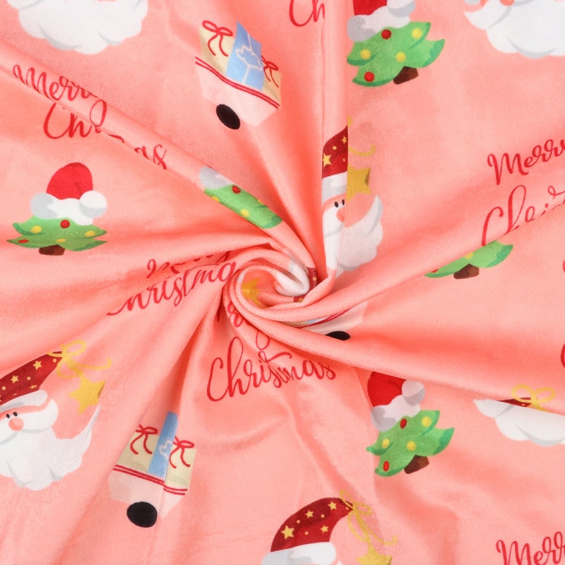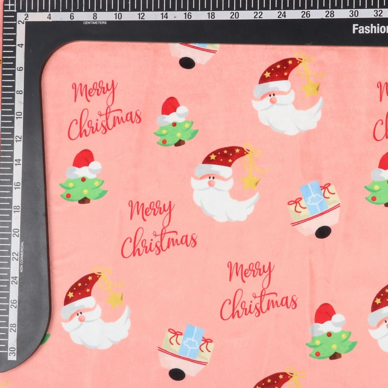 Peachy Pink And White Christmas Pattern Digital Print Velvet Fabric