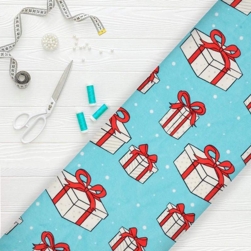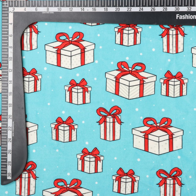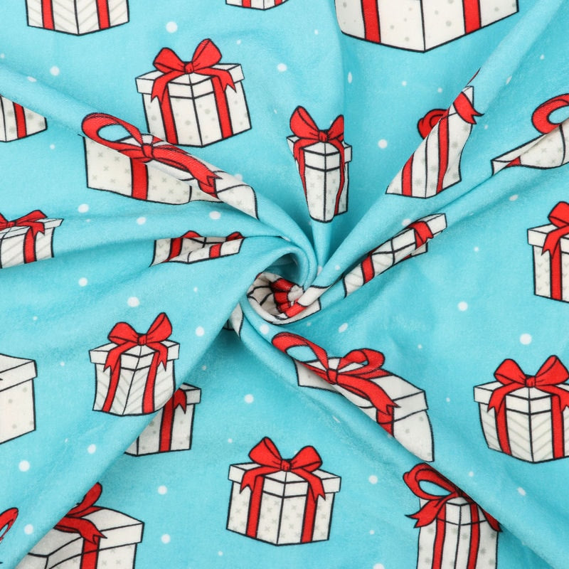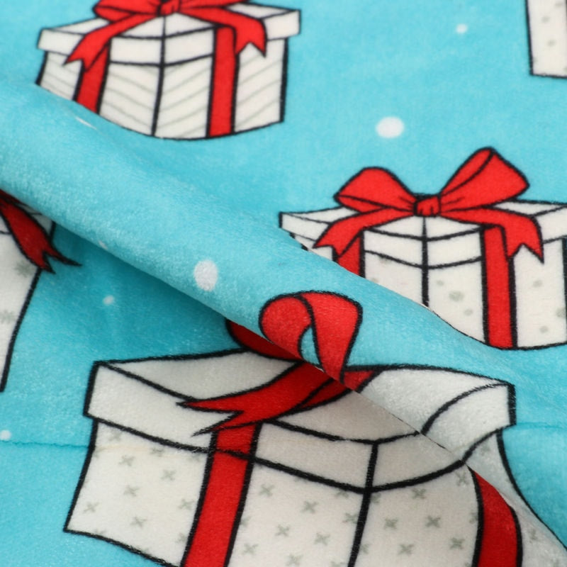 Sky Blue And White Christmas Pattern Digital Print Velvet Fabric