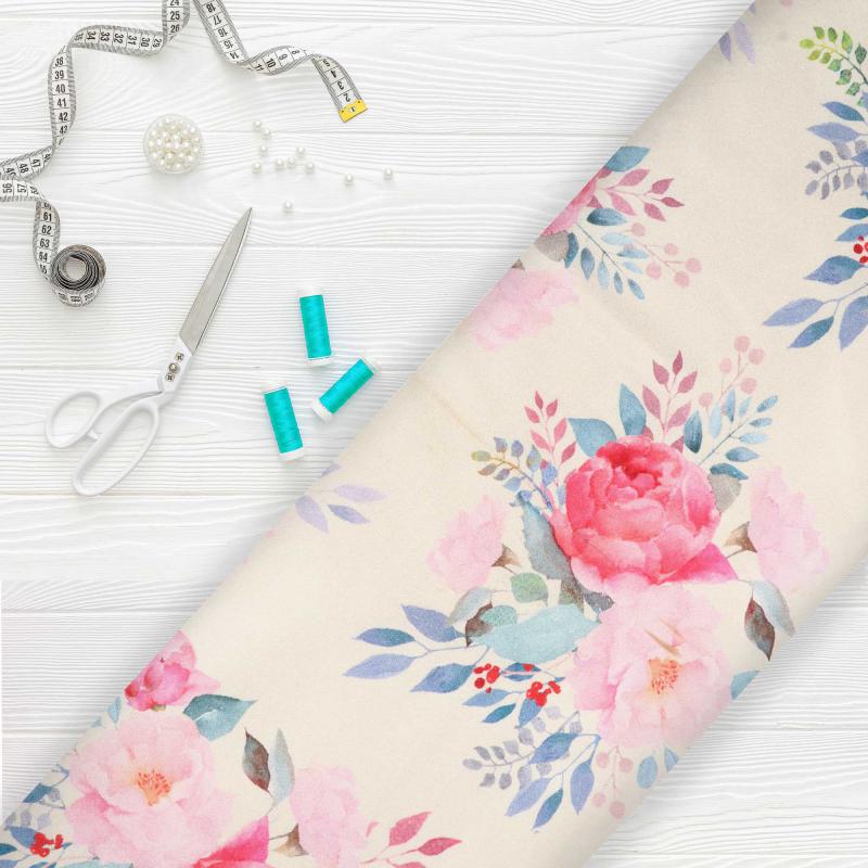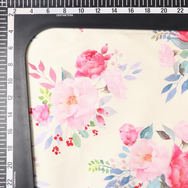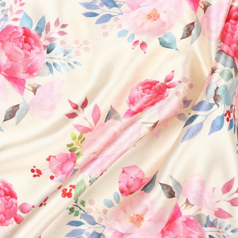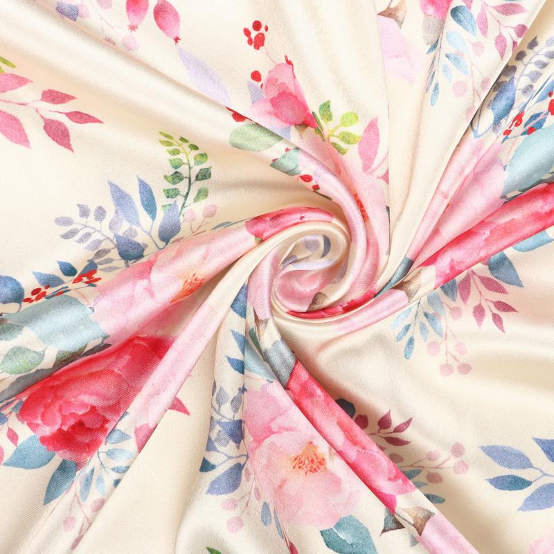 Dusty Light Yellow And Pink Floral Pattern Digital Print Japan Satin Fabric