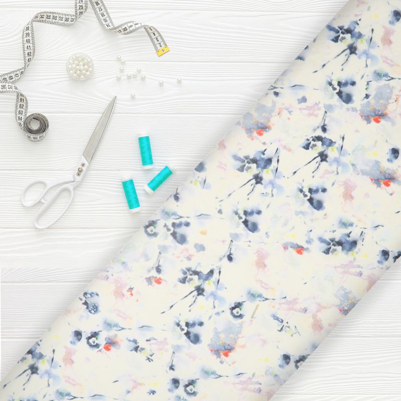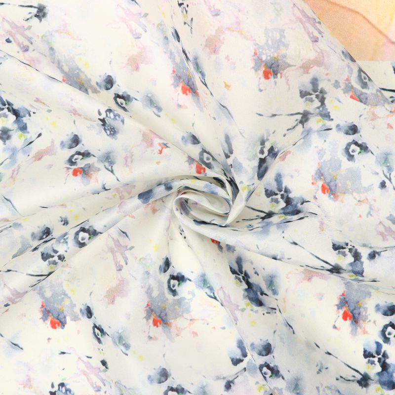Aegean Blue And Red Abstract Pattern Digital Print Liquid Organza Fabric