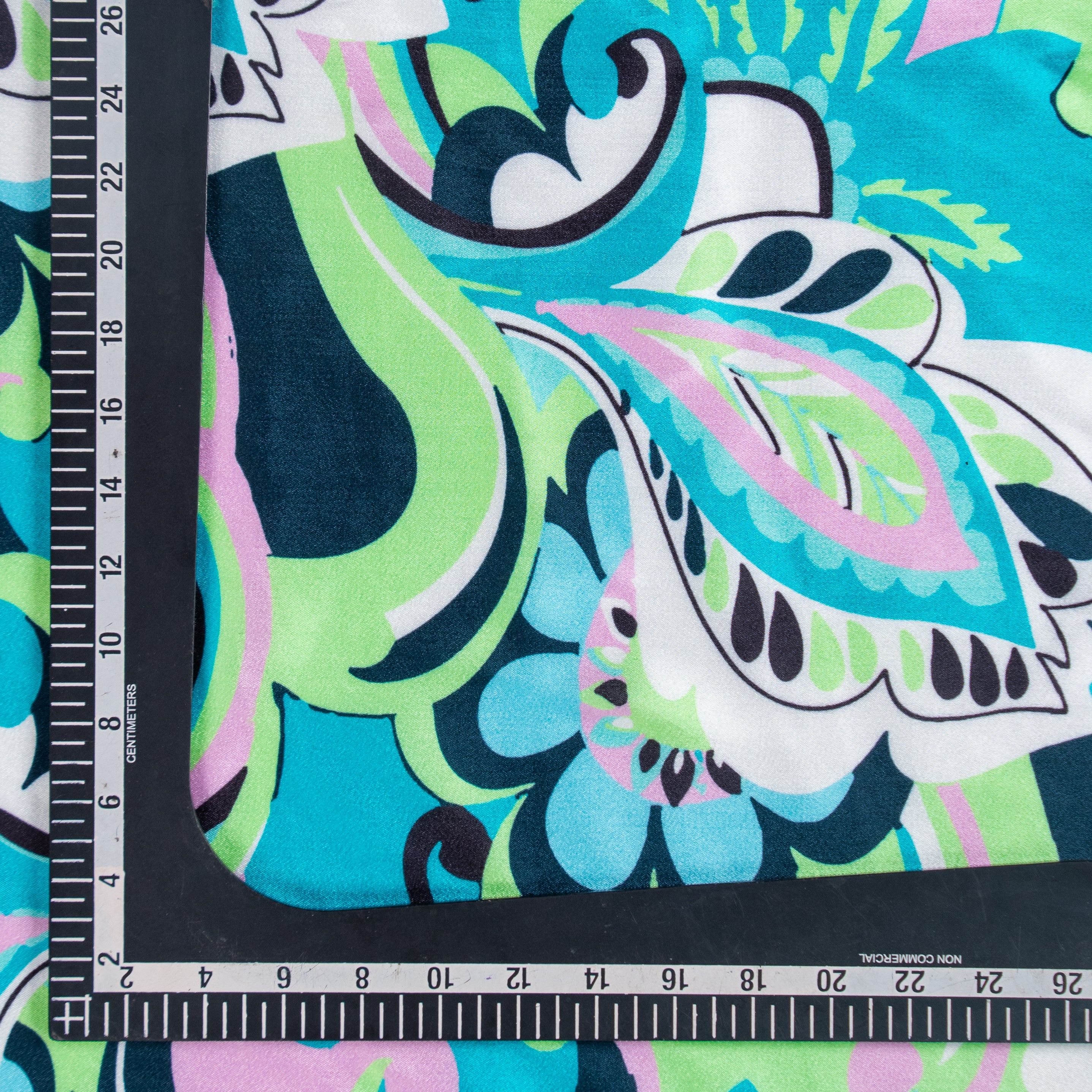 Aqua and Pink Intricated Floral Digital Print Japan Satin Fabric
