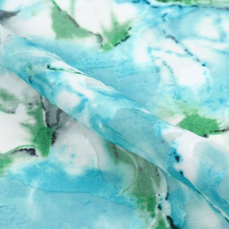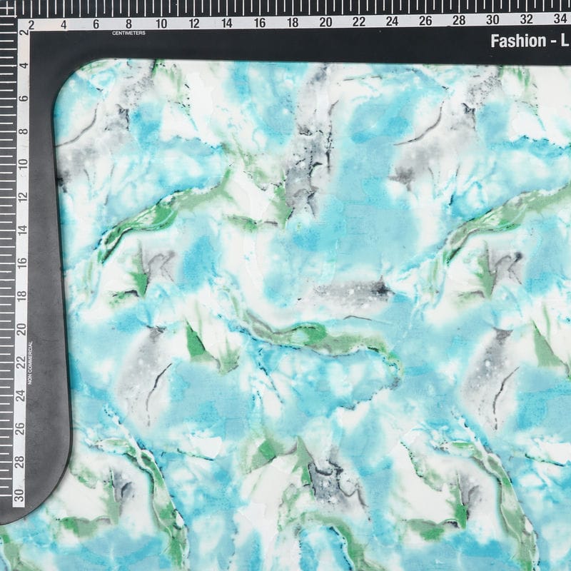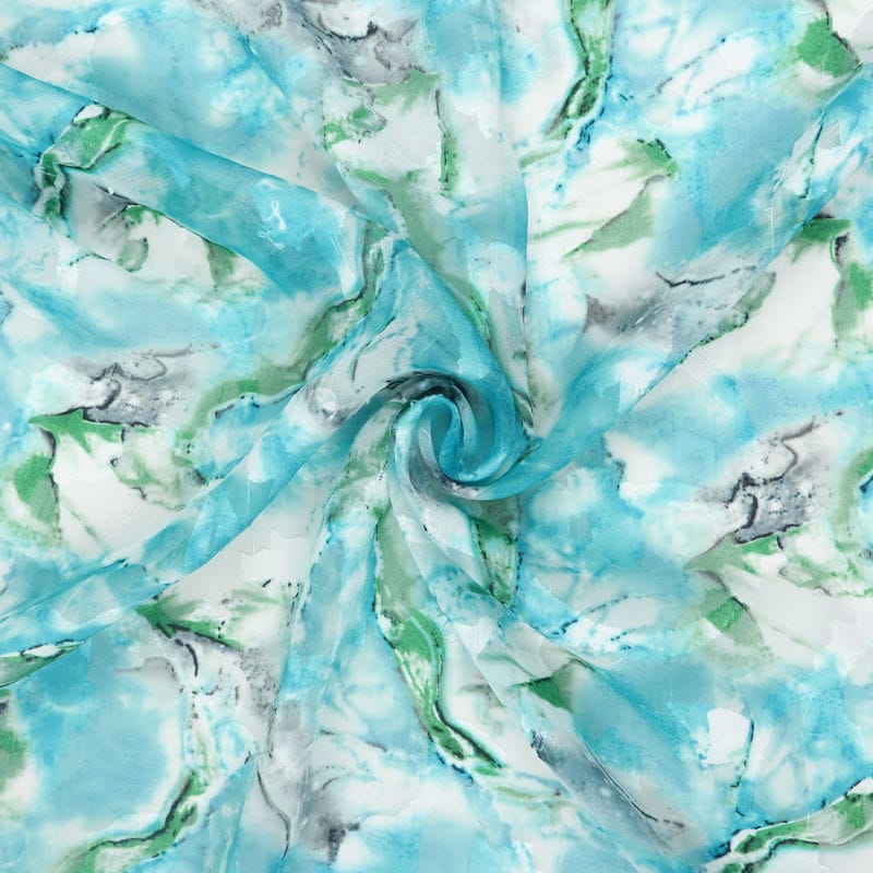 Aqua Blue And Green Abstract Pattern Digital Print Georgette Jacqaurd Fabric