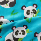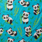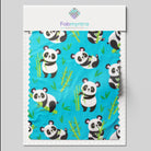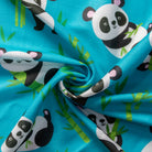 Aqua Blue Panda Pattern Digital Print Cotton Slub Fabric