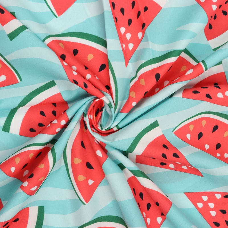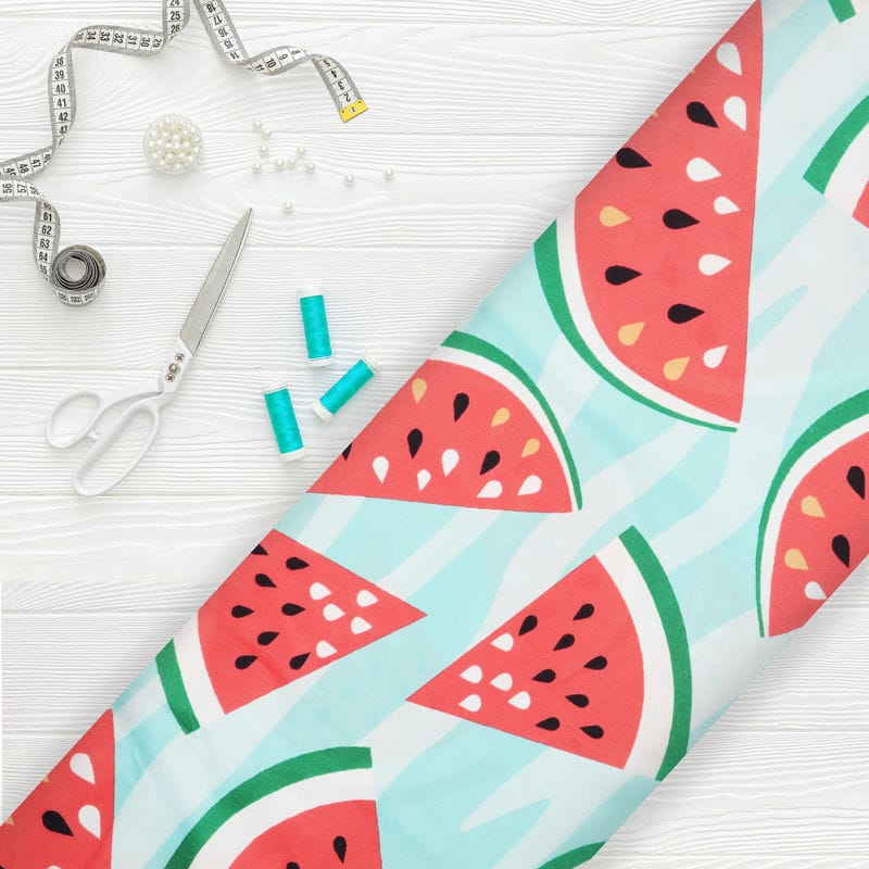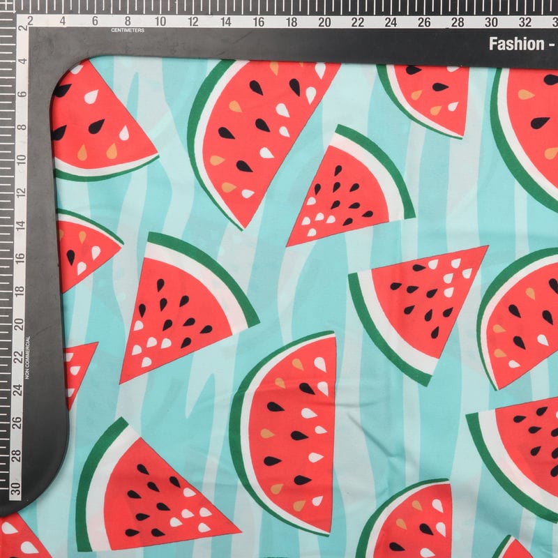 Aqua Green And Red Fruit Pattern Digital Print Crepe Fabric