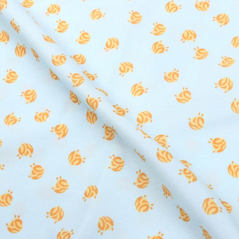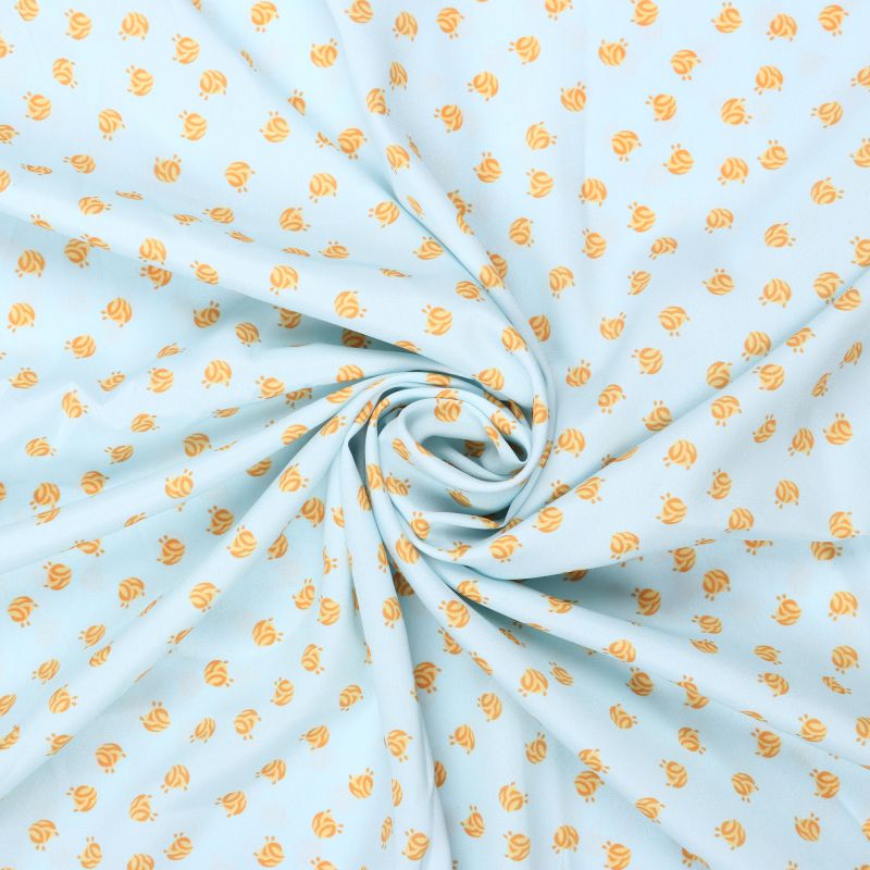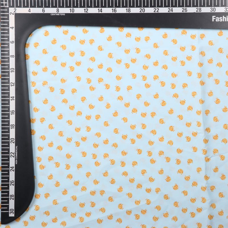 Baby Blue And Mustard Yellow Floral Pattern Digital Print Crepe Fabric