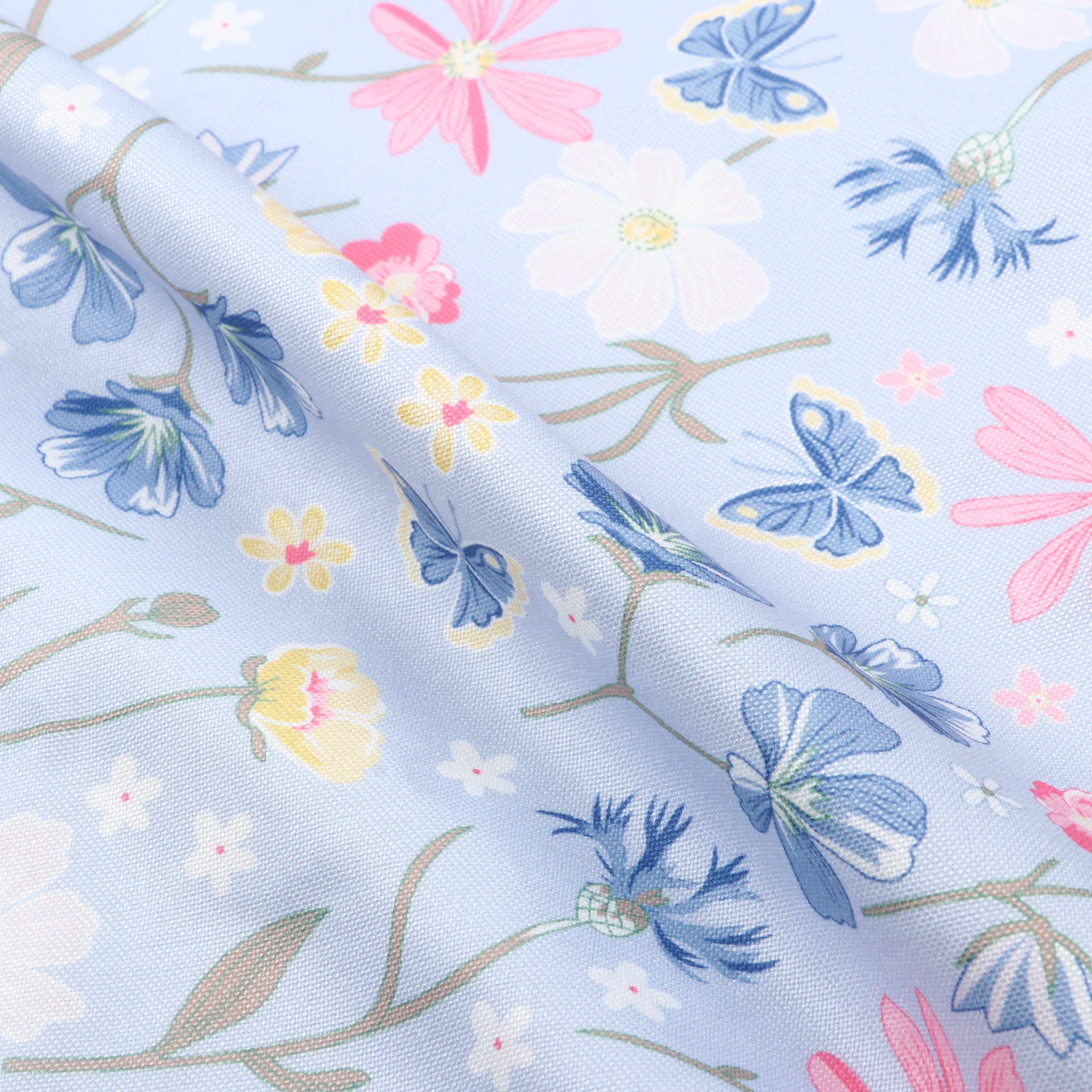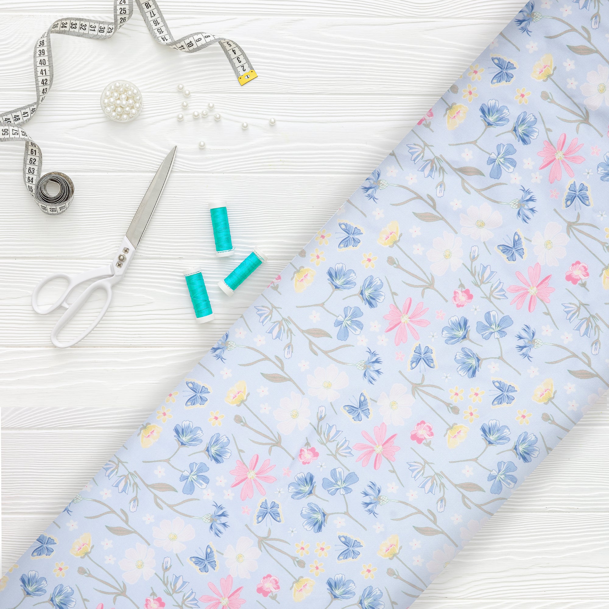 Baby Blue And Pink Floral Pattern Digital Print Rayon Fabric