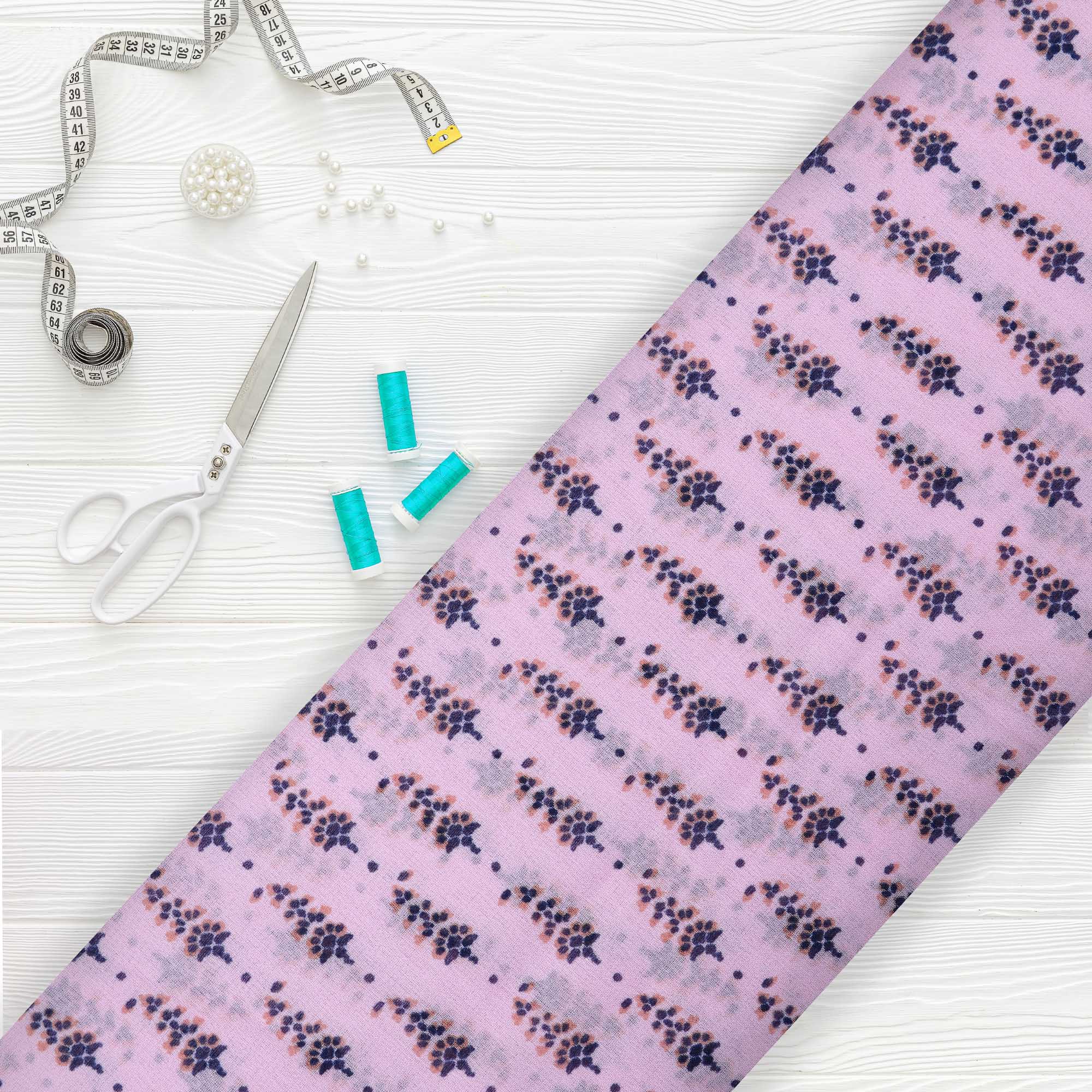 Baby Pink And Black Faulard Pattern Screen Print Georgette Fabric