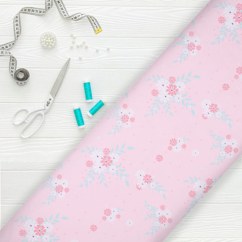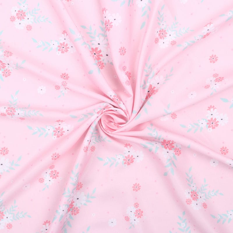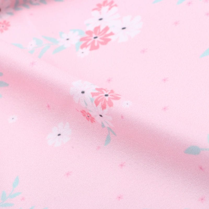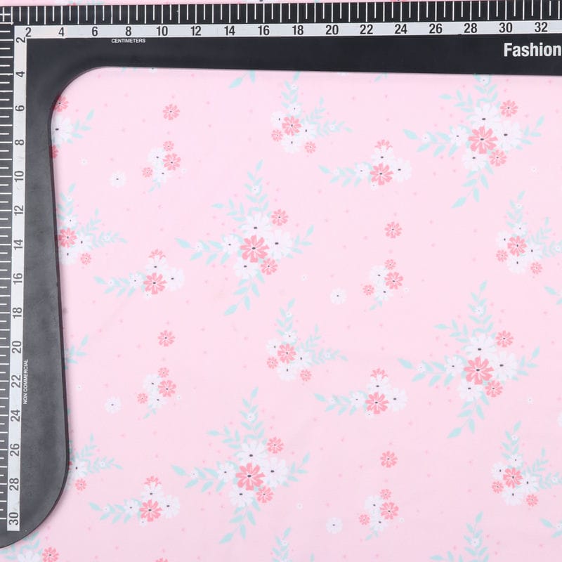 Baby Pink And White Floral Pattern Digital Print Crepe Fabric