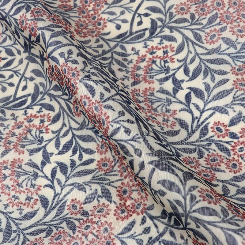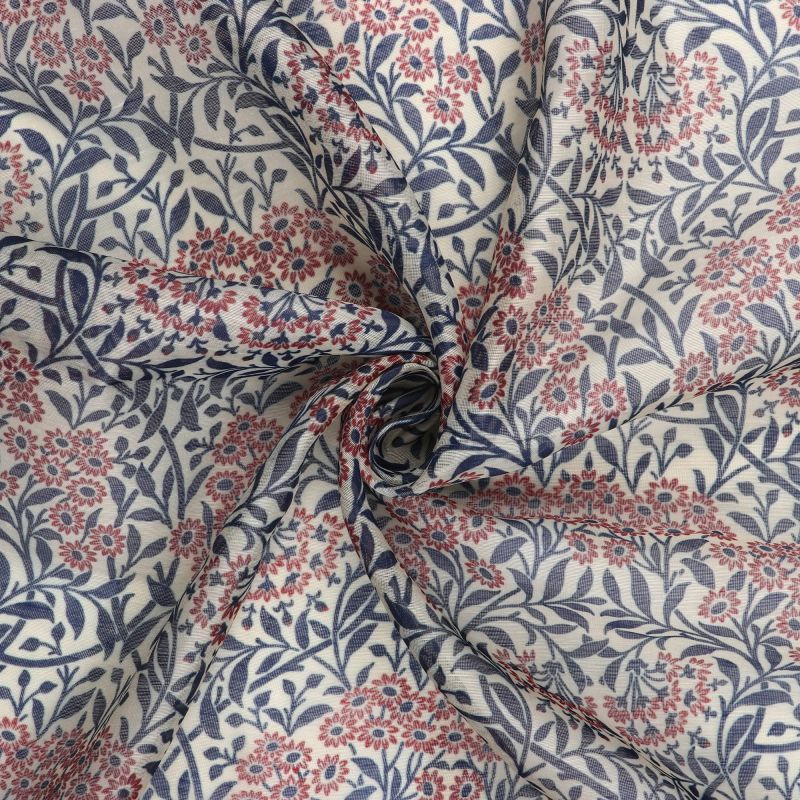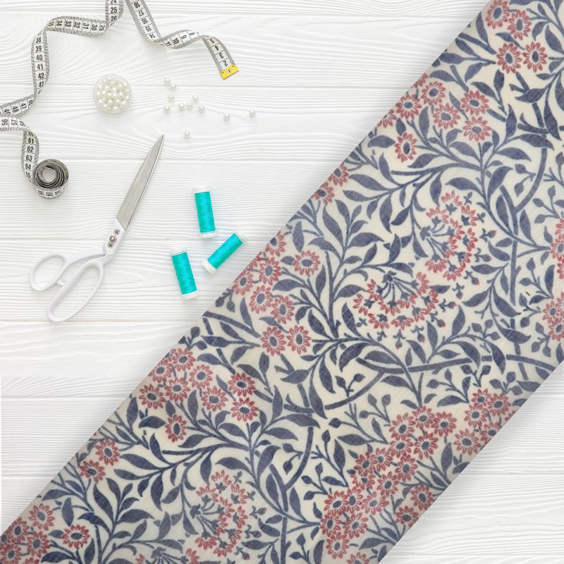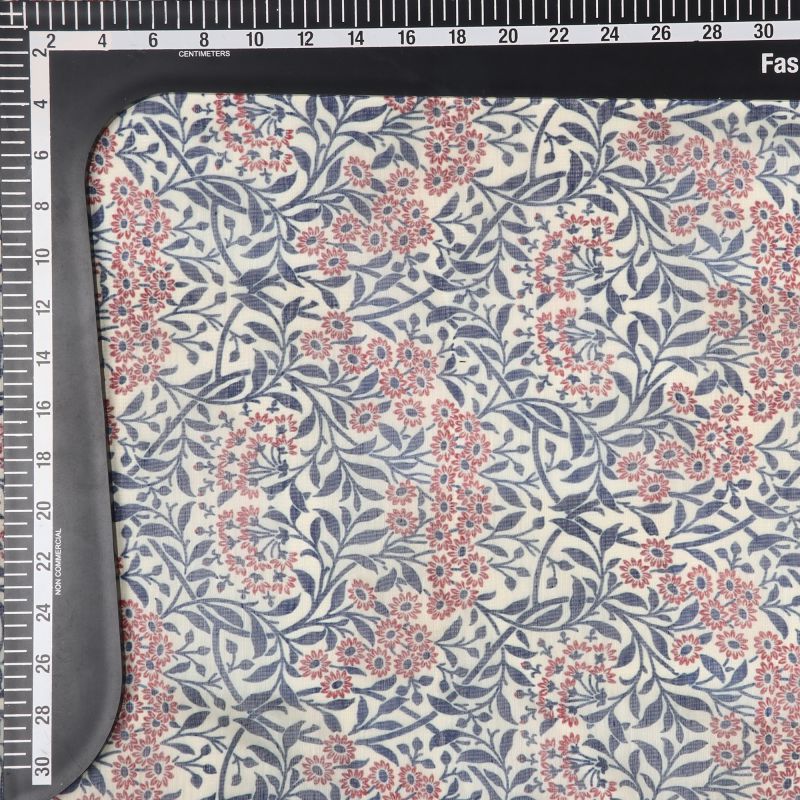 Beige And Navy Blue Floral Pattern Digital Print Chanderi Fabric