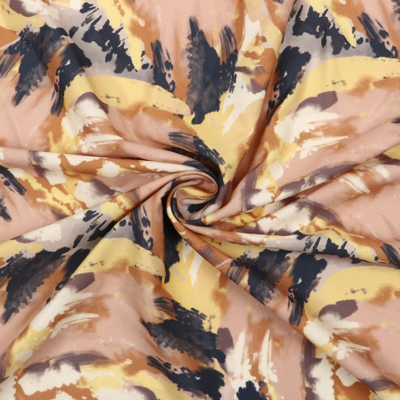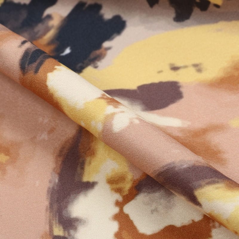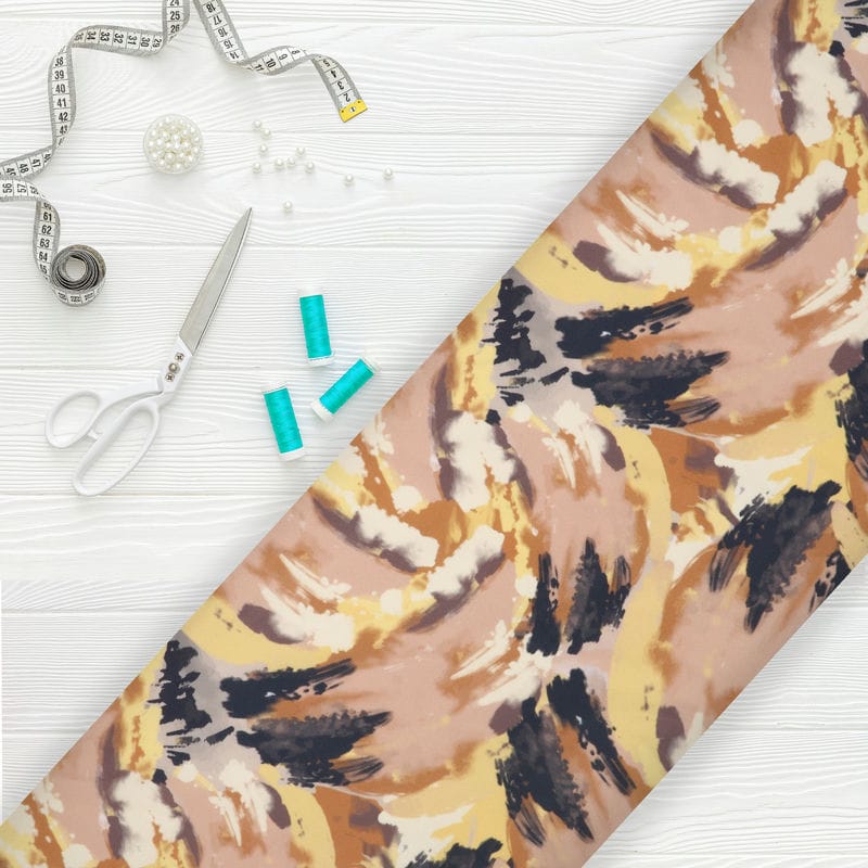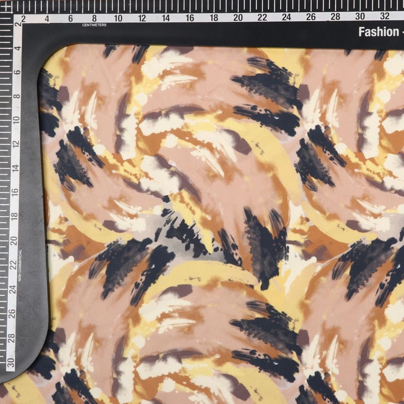 Beige And Yellow Abstract Pattern Digital Print Crepe Fabric