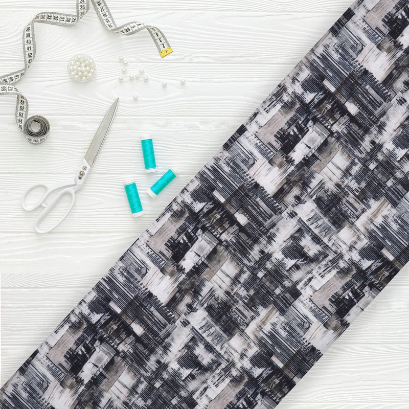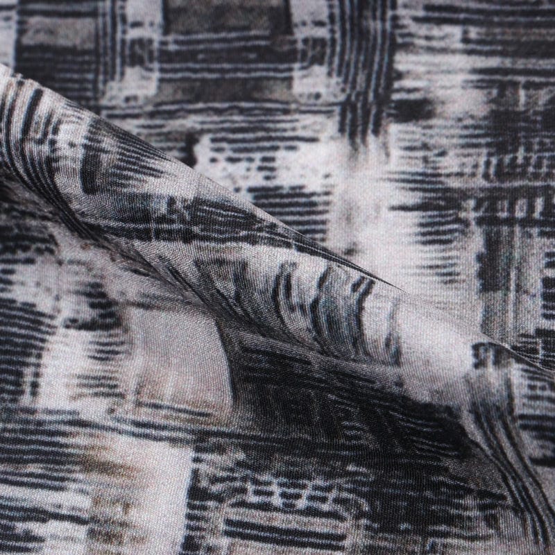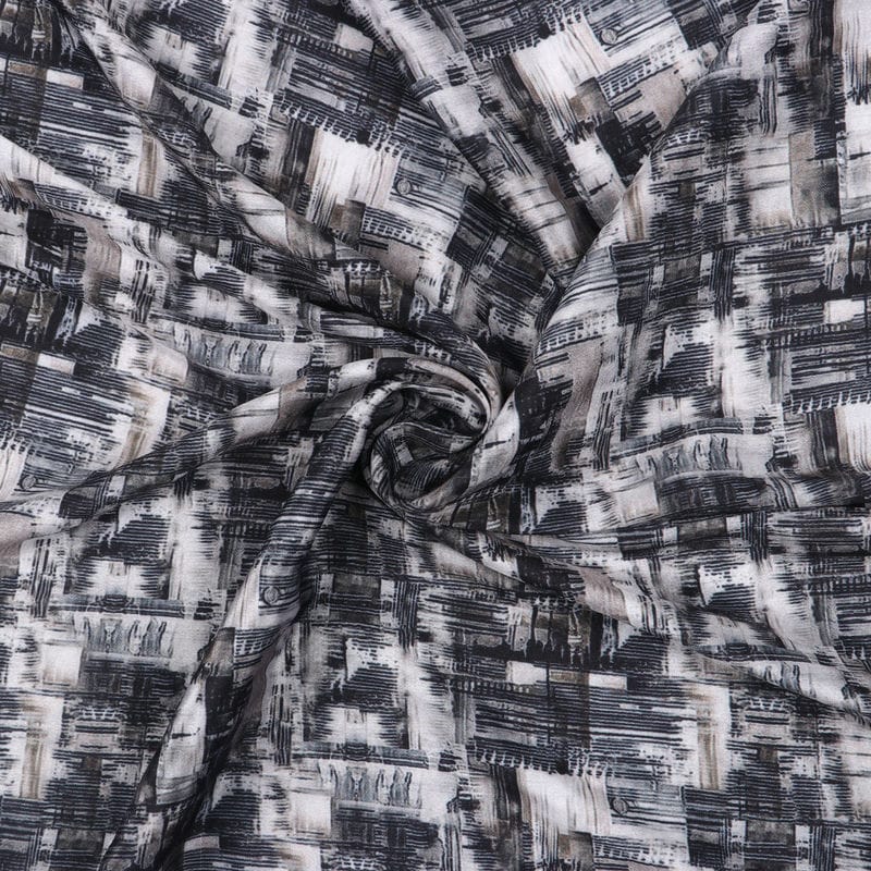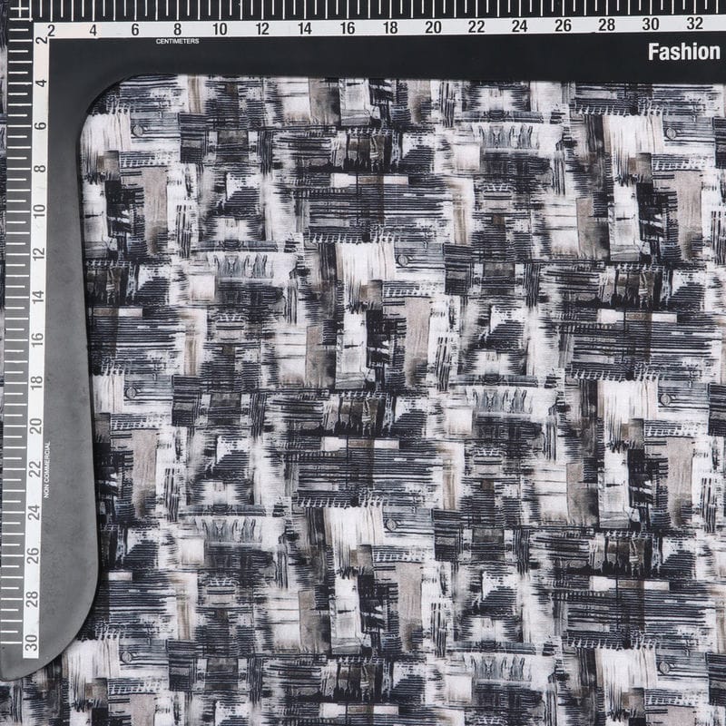 Black And Beige Abstract Pattern Digital Print Silk Crepe Fabric