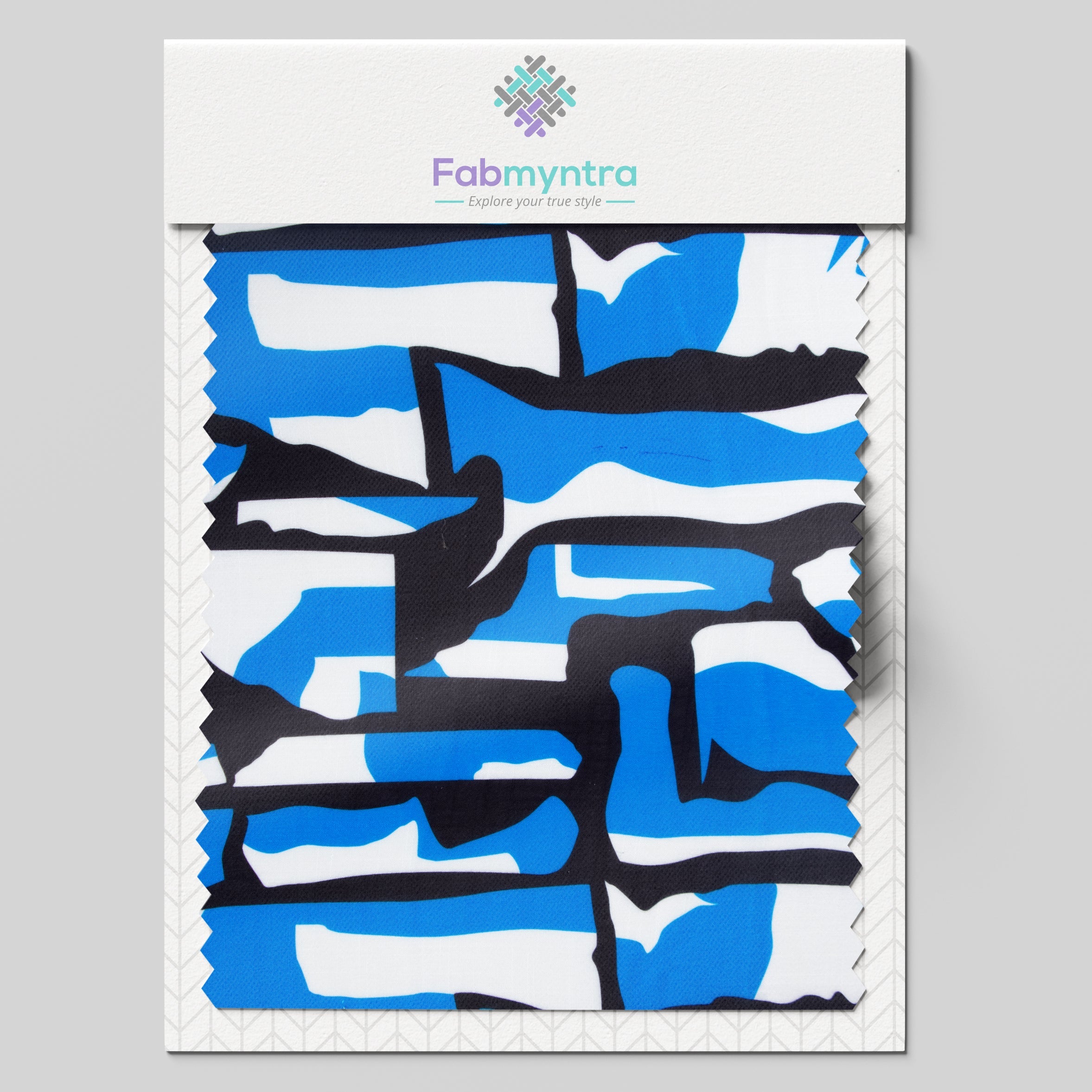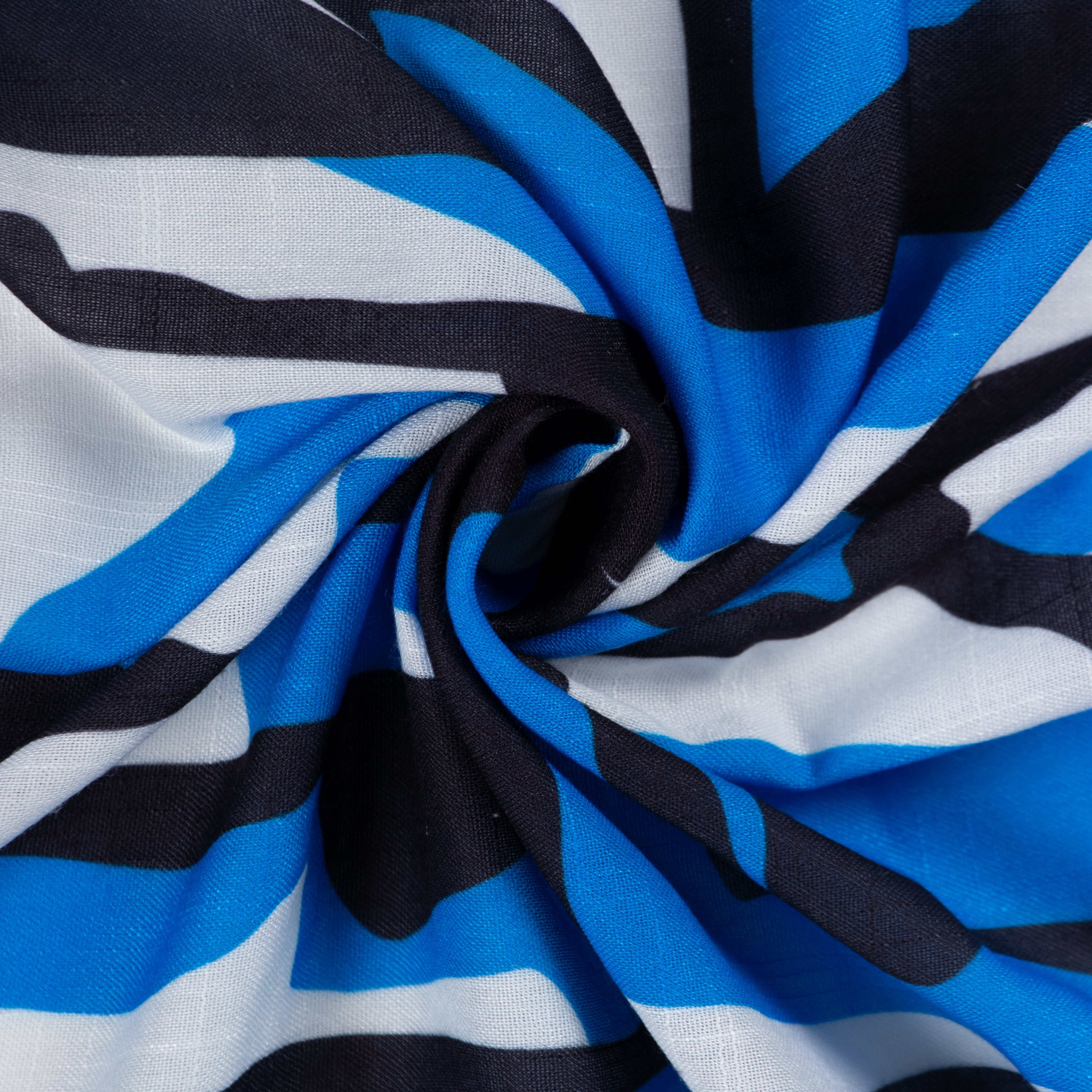 Black and Blue Abstrac Pattern Digital Print Cotton Slub Fabric