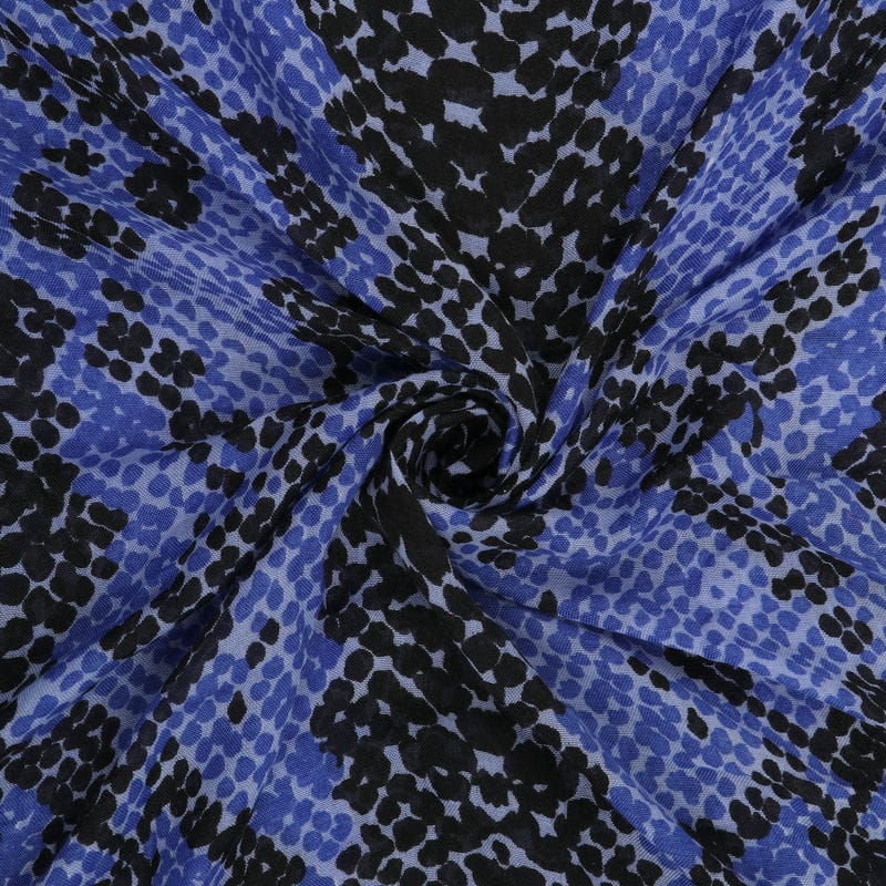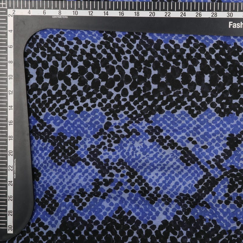 Black And Blue Snake Pattern Screen Print Mul Fabric