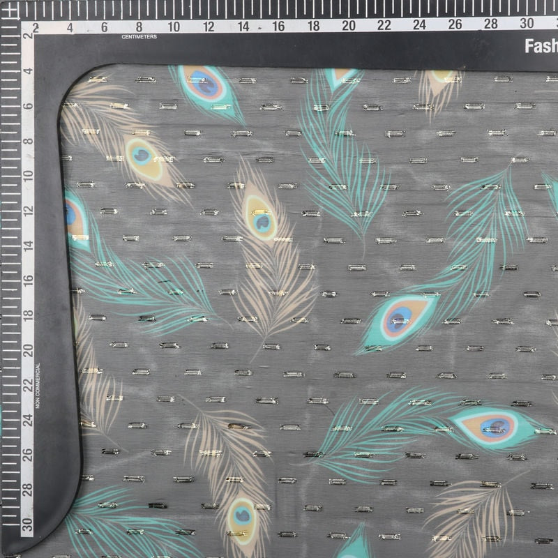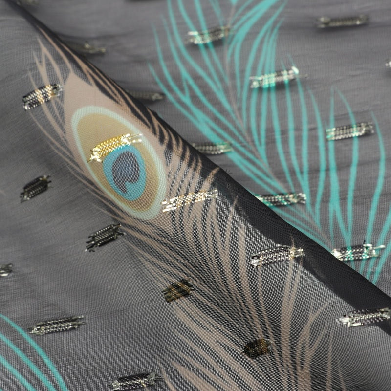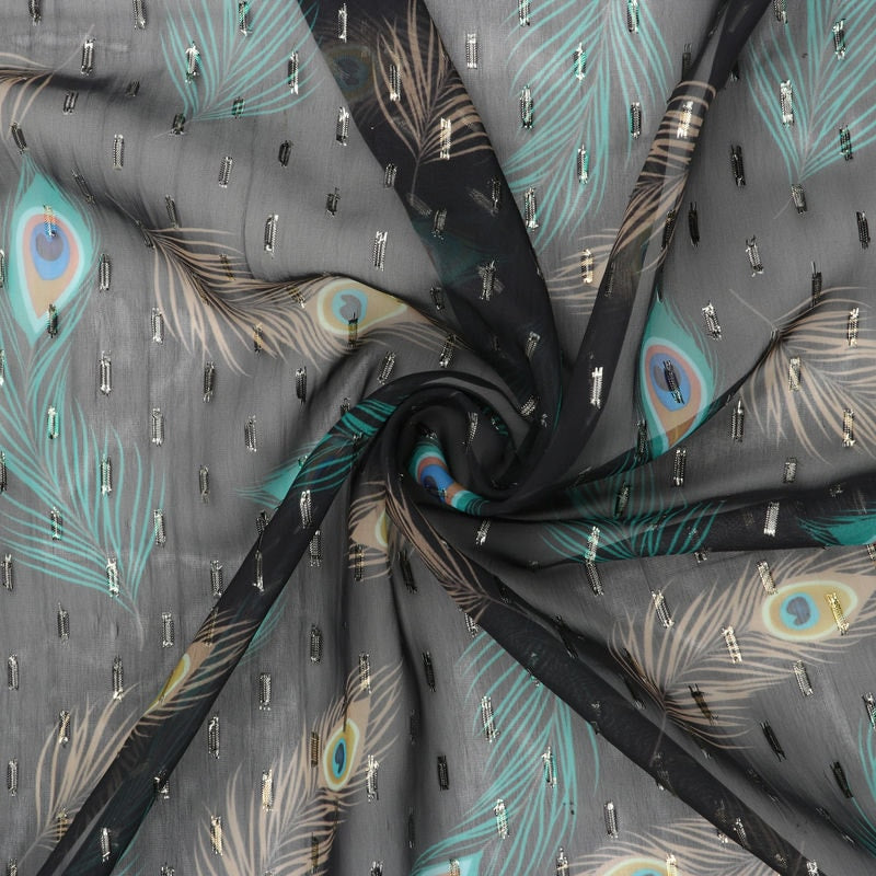Black And Green Kids Pattern Digital Print Chiffon Golden Dobby Fabric
