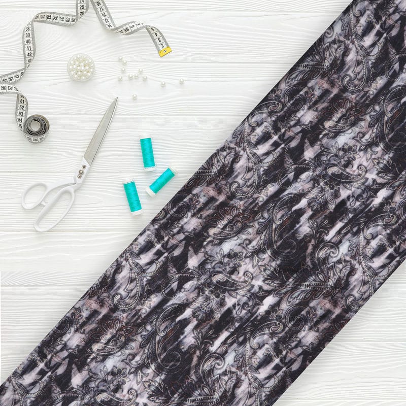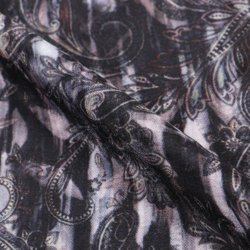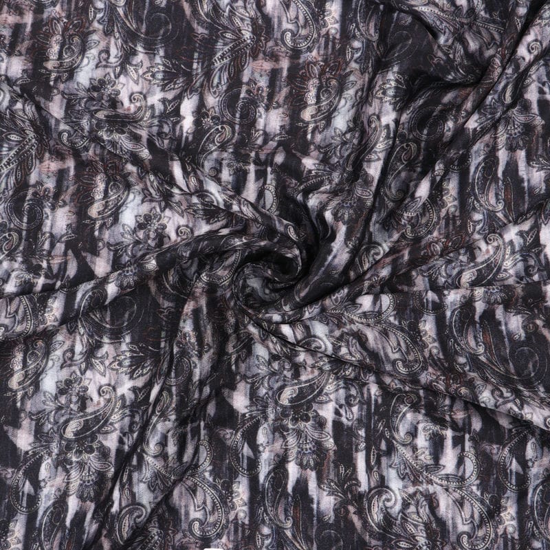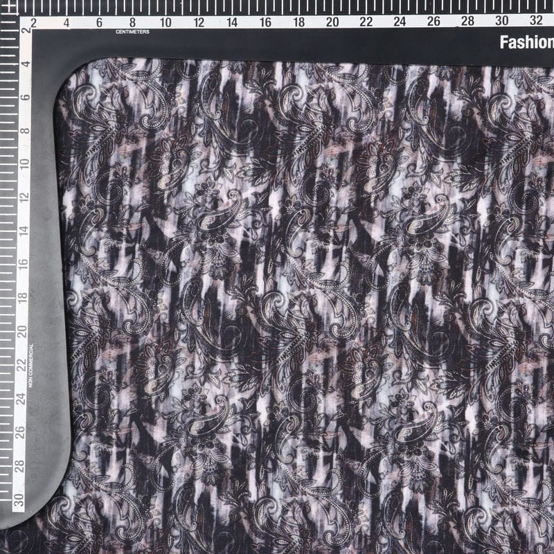 Black And Light Yellow Paisley Pattern Digital Print Silk Crepe Fabric