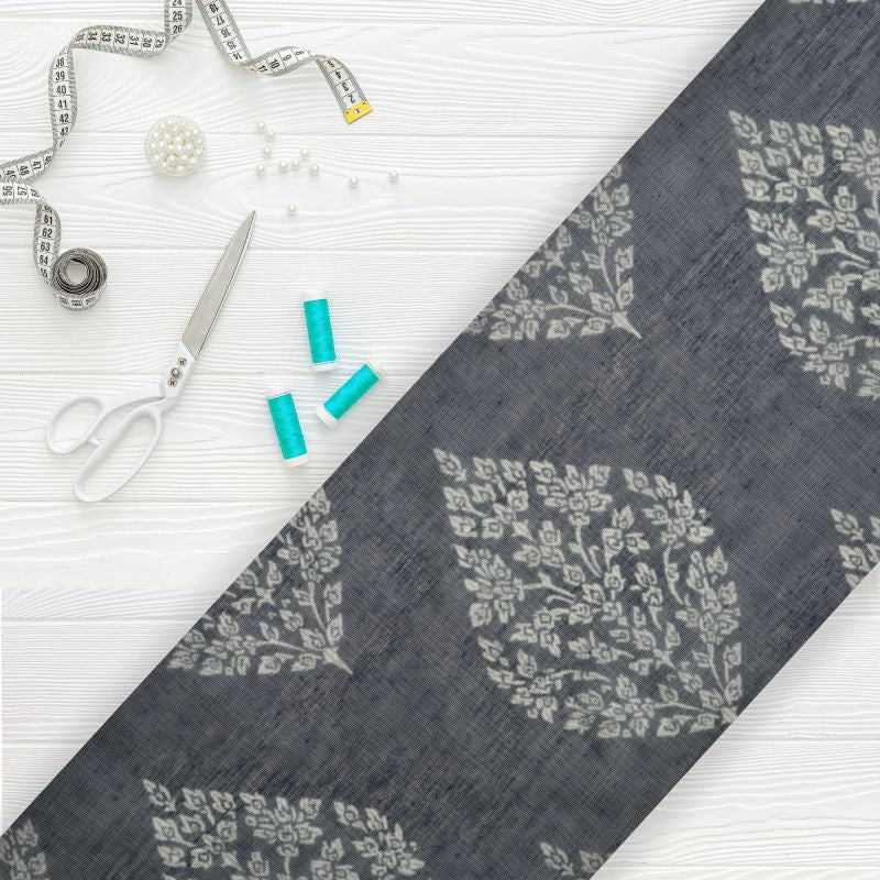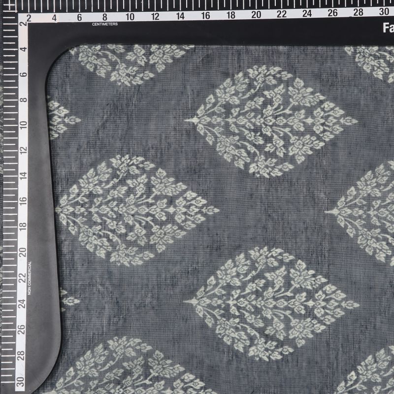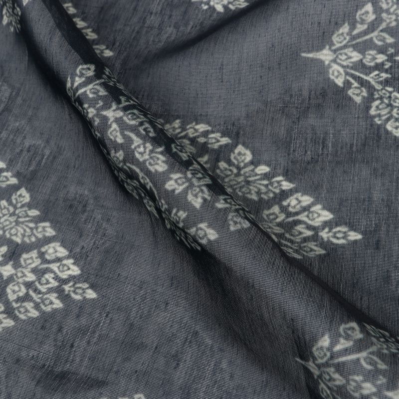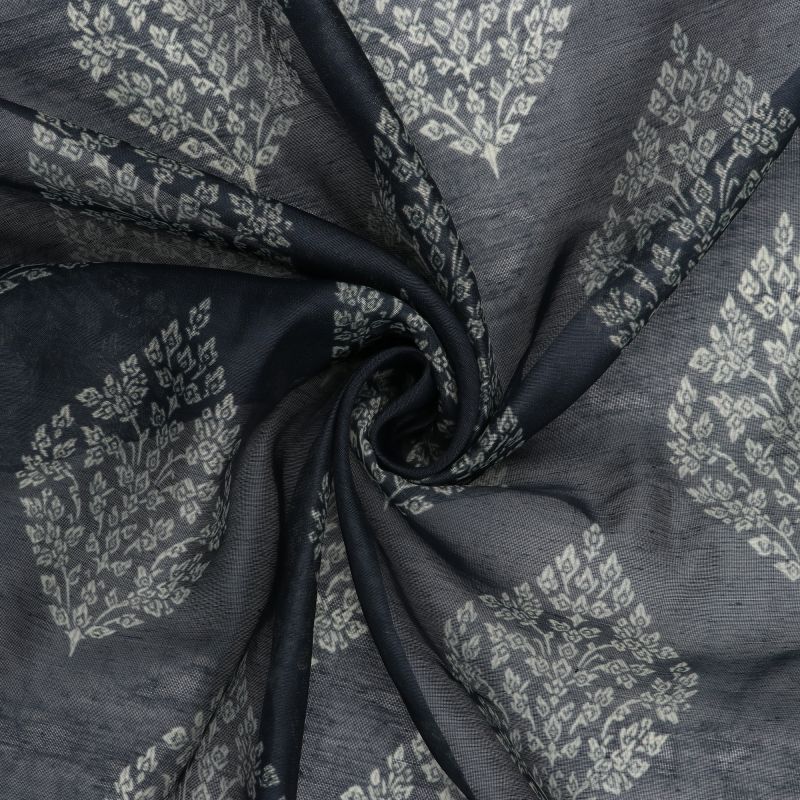 Black And Off White Mughal Pattern Digital Print Chanderi Fabric