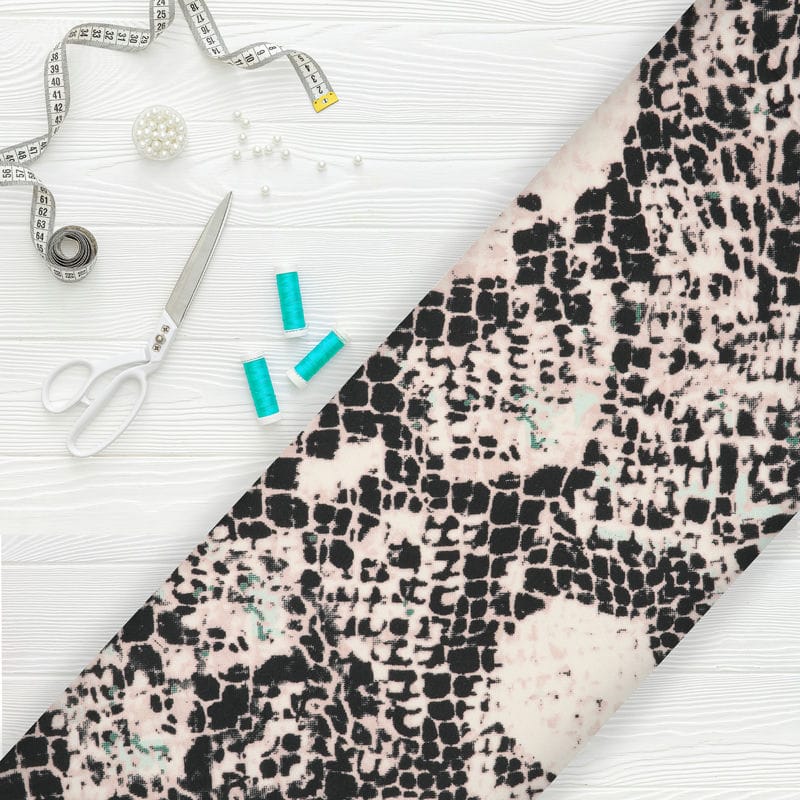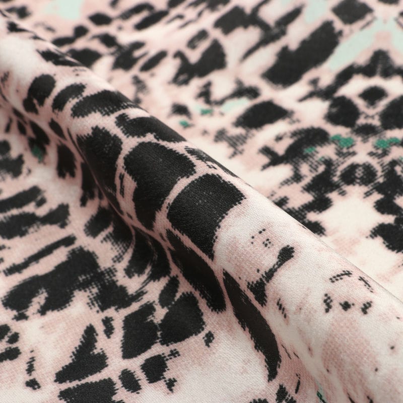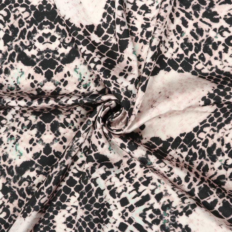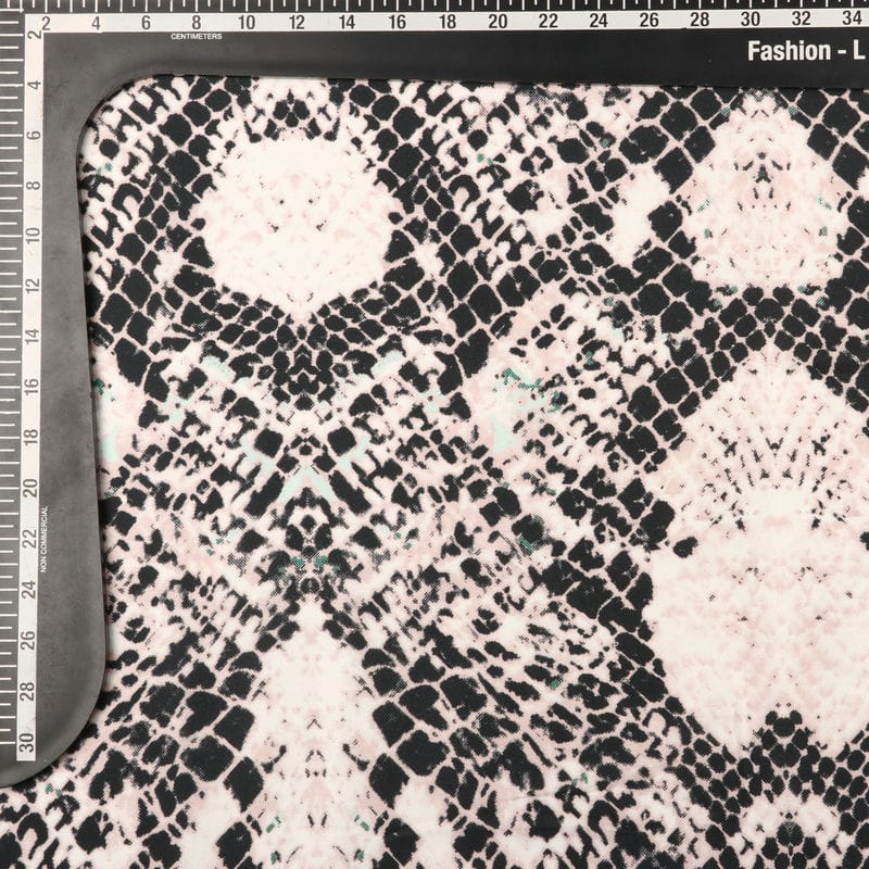 Black And Peach Snake Pattern Digital Print Japan Satin Fabric