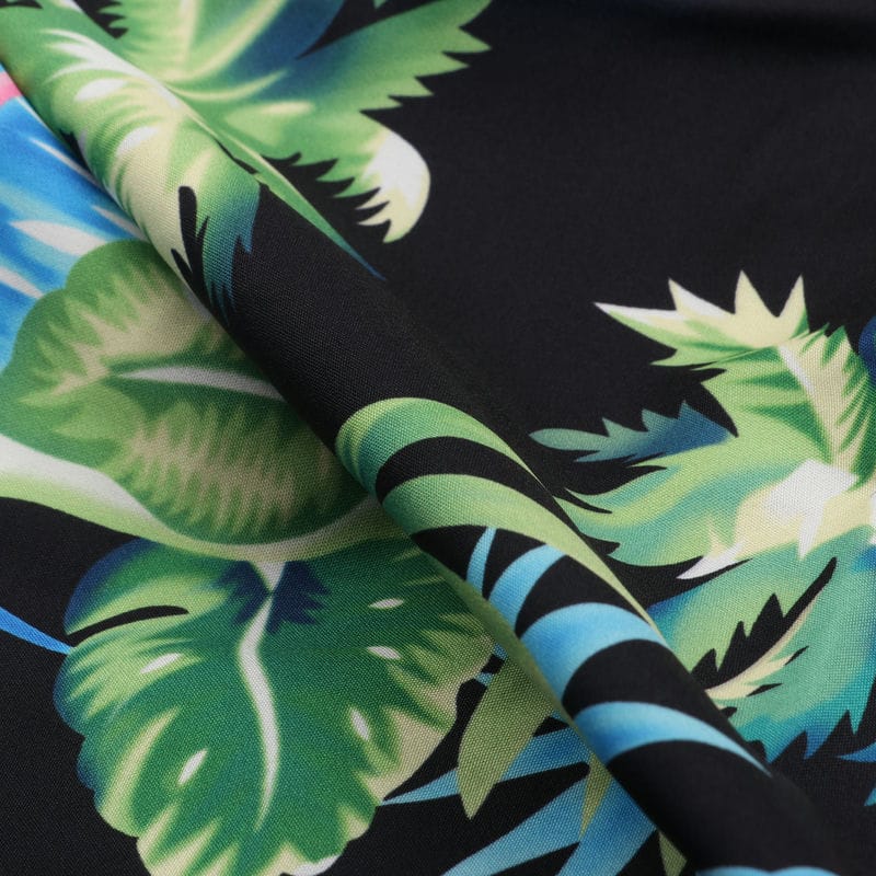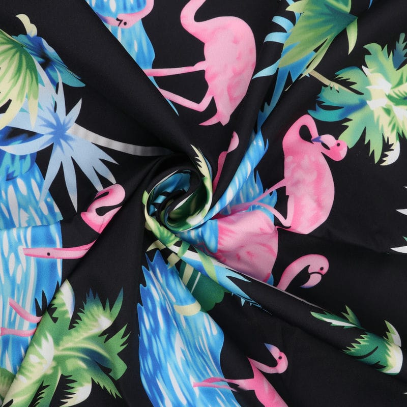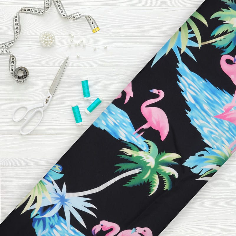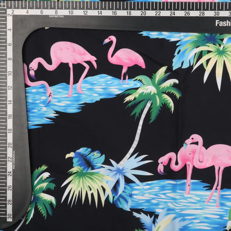 Black And Pink Birds Pattern Digital Print Crepe Fabric