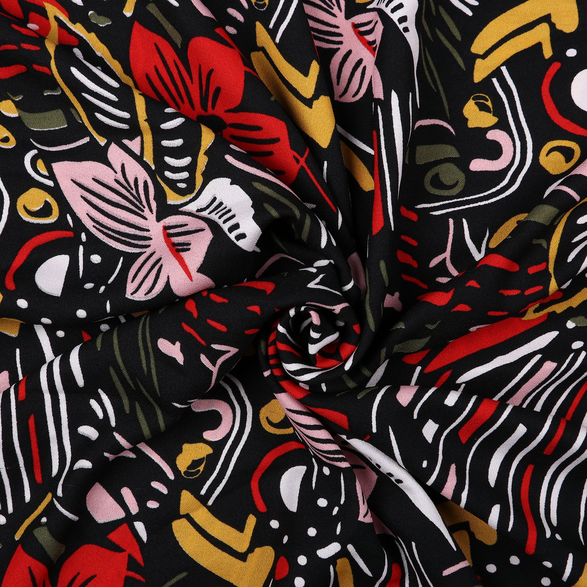 Black And Red Floral Pattern Digital Print Moss Crepe Fabric