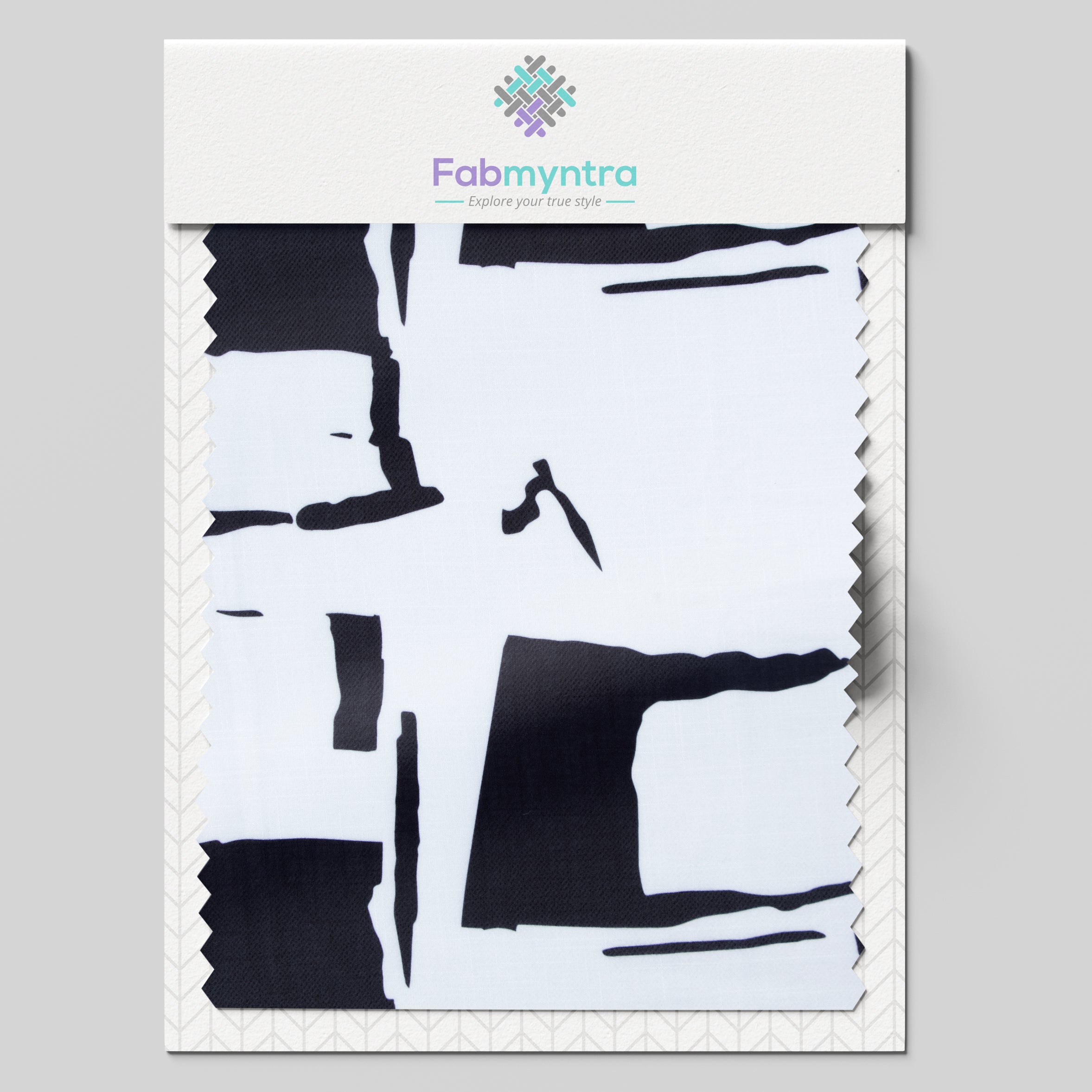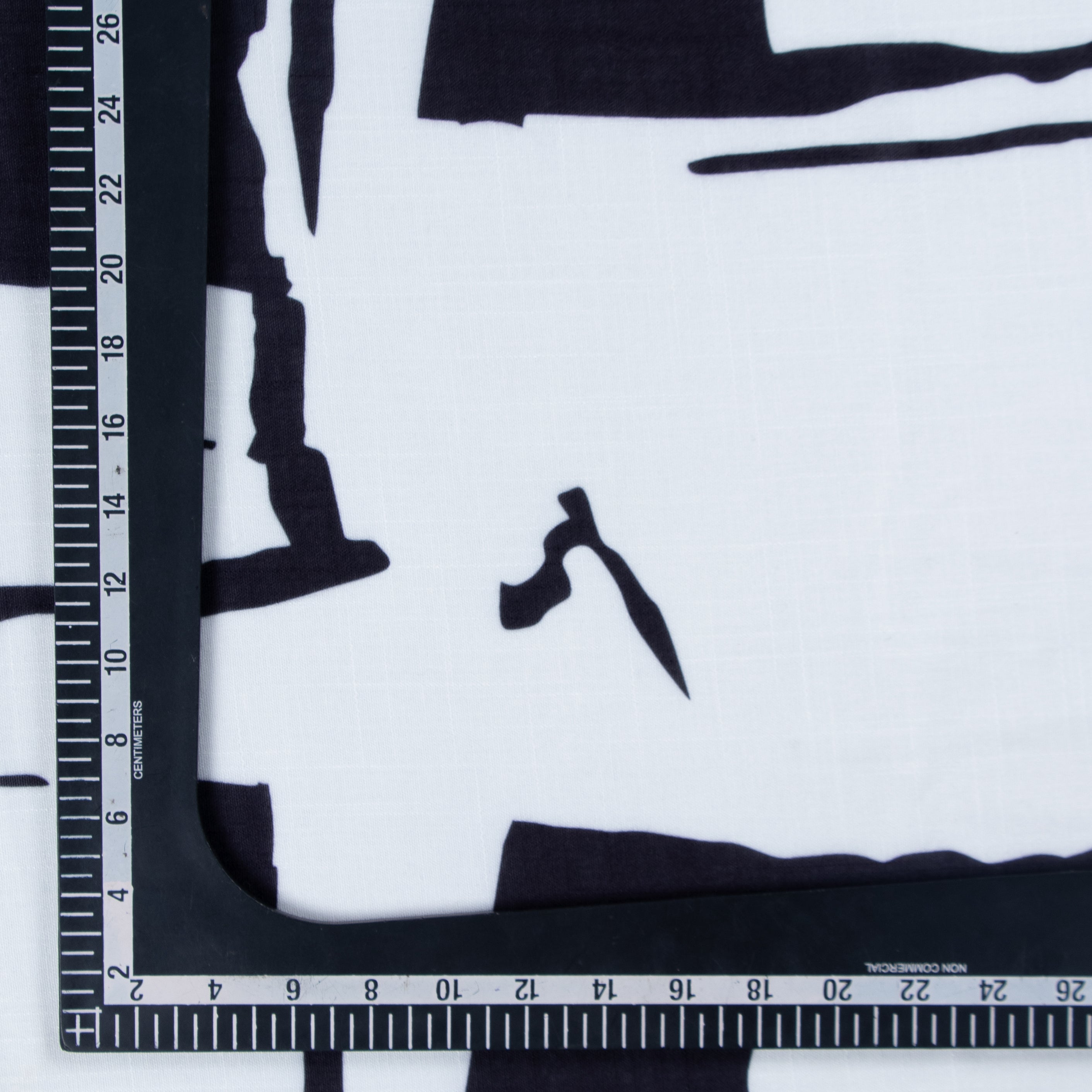 Black and White Abstrac Digital Print Cotton Slub Fabric