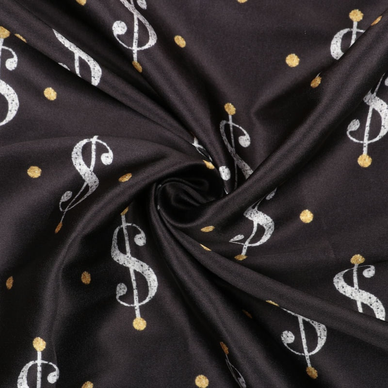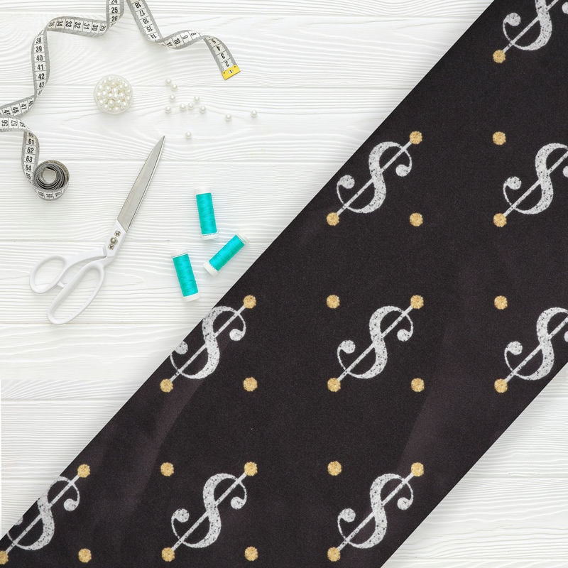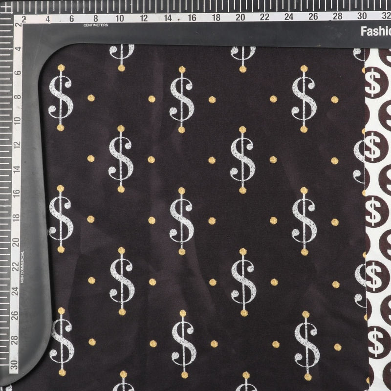 Black And White Dollar Pattern Digital Print Japan Satin Fabric