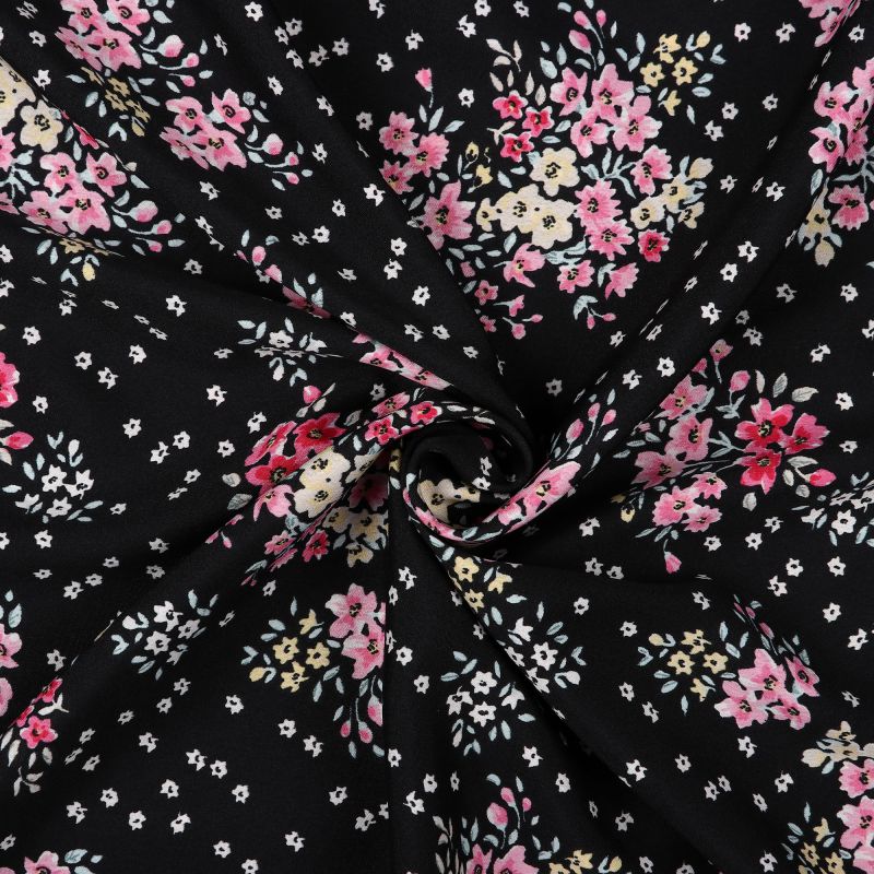 Black And White Floral Pattern Screen Print Crepe Fabric
