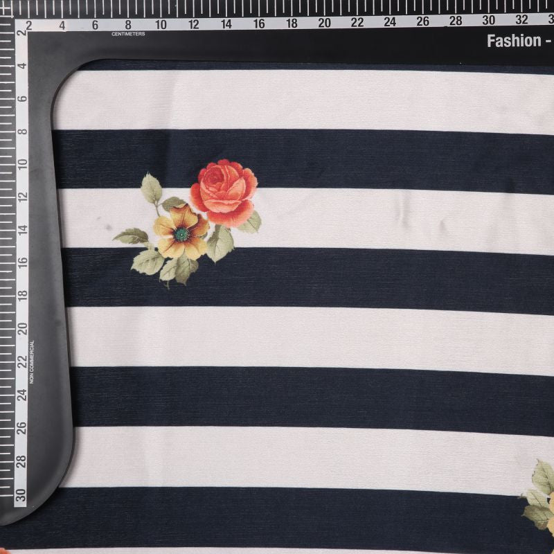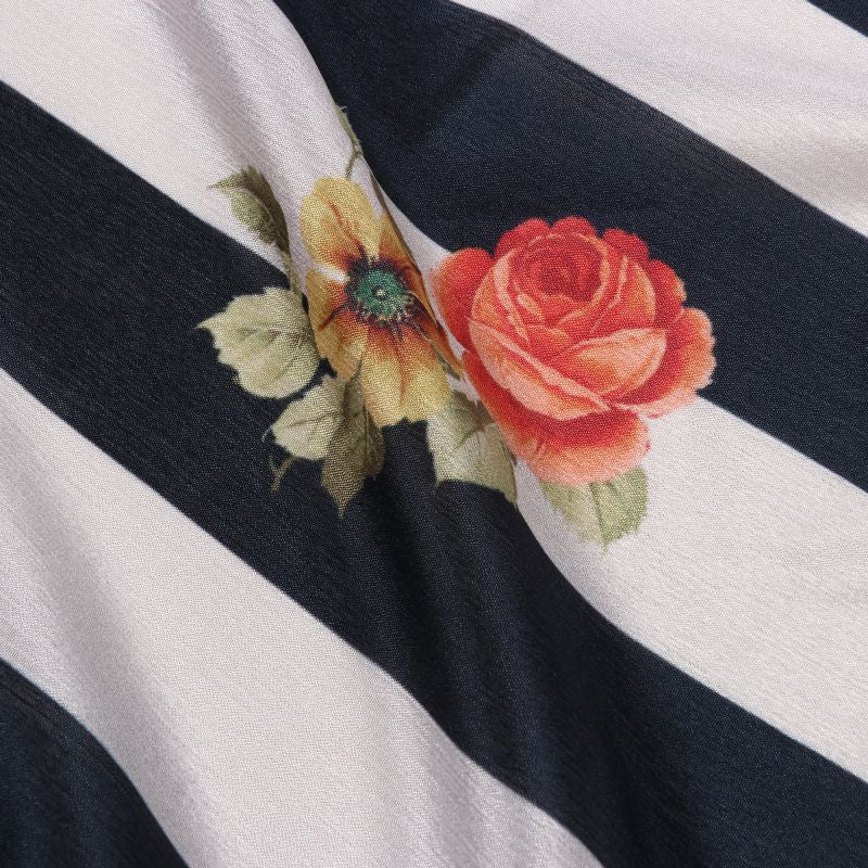 Black And White Stripes Pattern Digital Print Chinon Chiffon Fabric