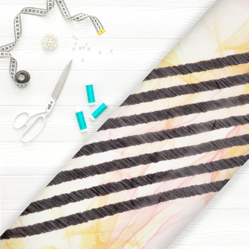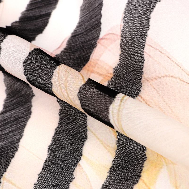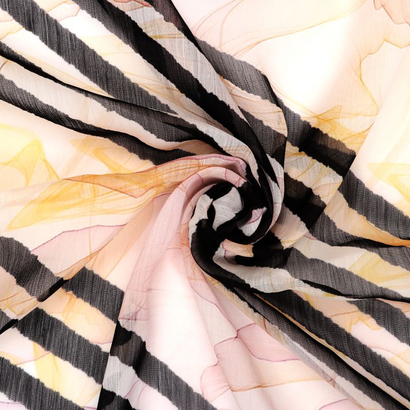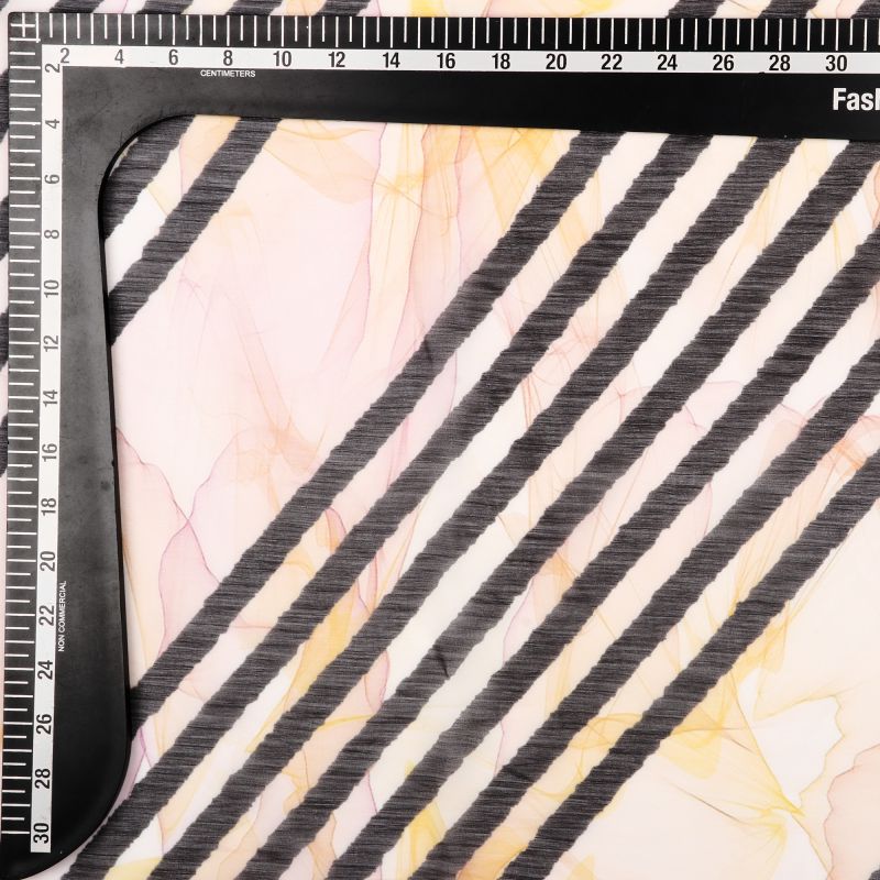 Black And Yellow Abstract Pattern Digital Print Silver Chiffon Fabric