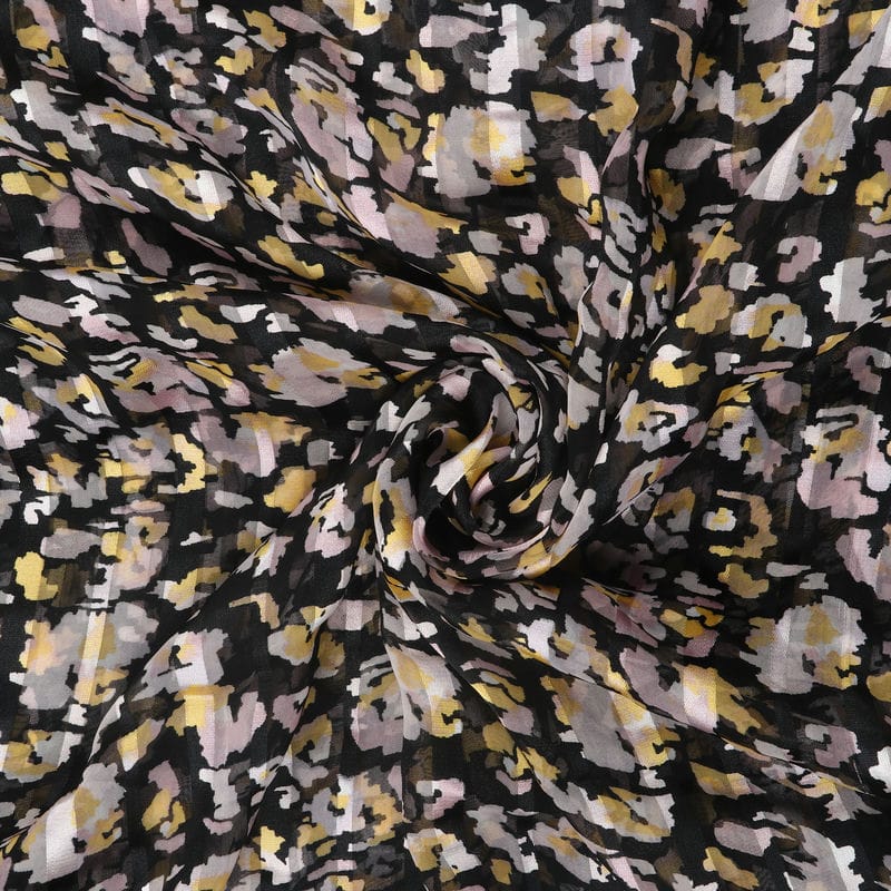 Black And Yellow Animal Pattern Screen Print Chiffon Satin Fabric
