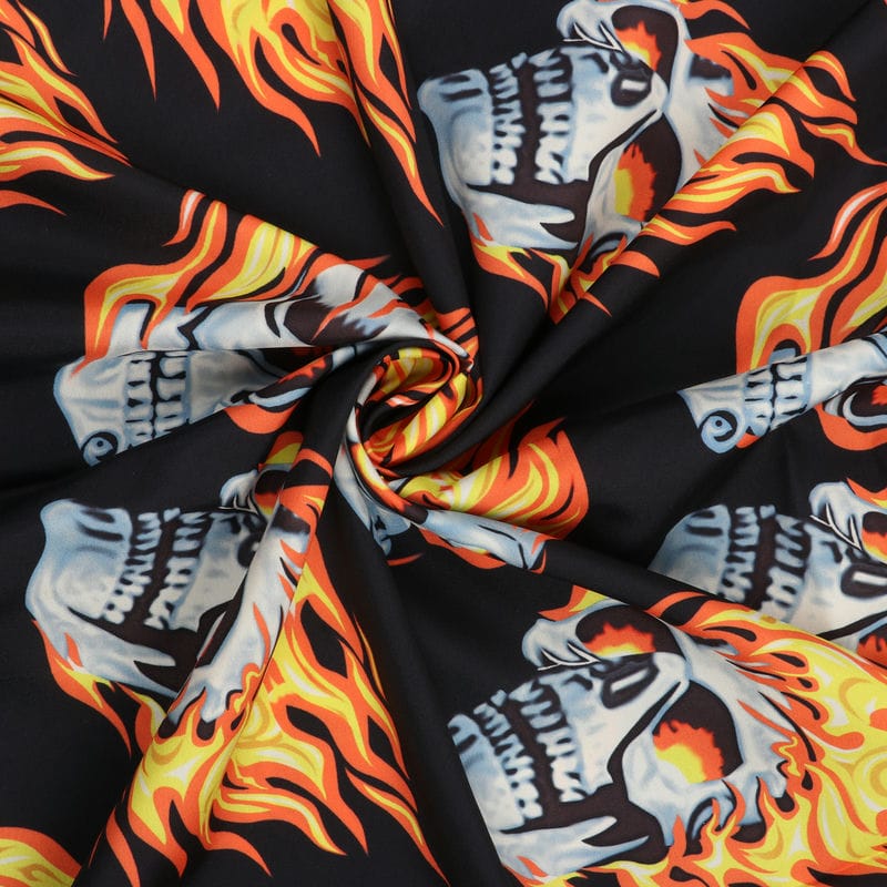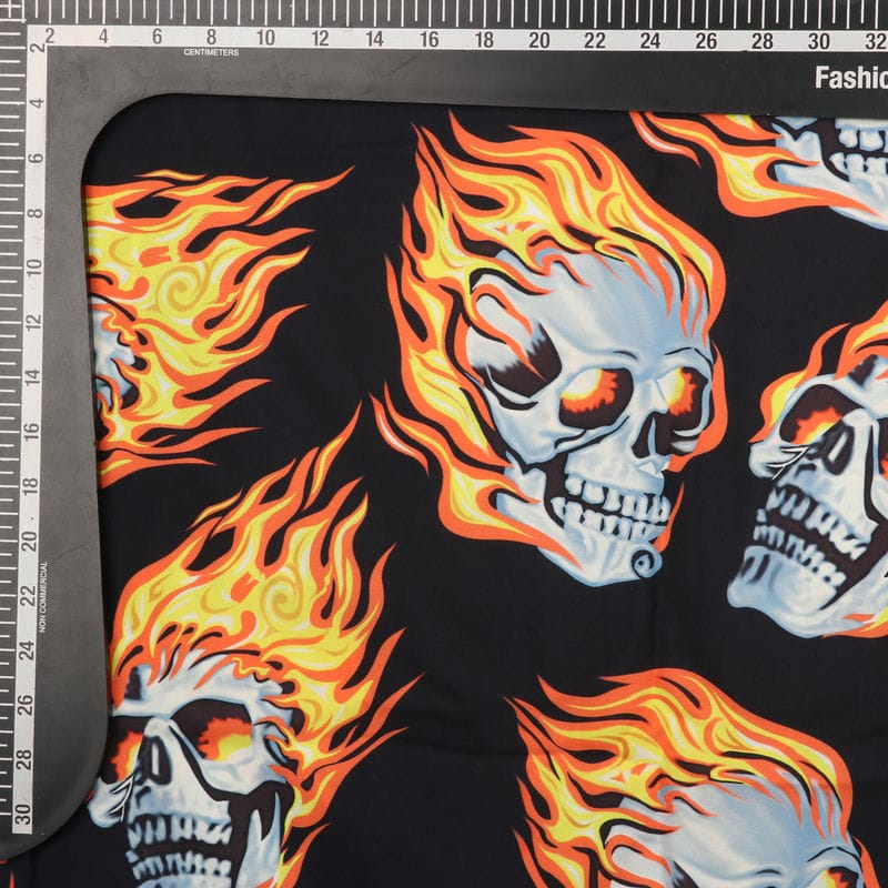 Black And Yellow Halloween Pattern Digital Print Crepe Fabric