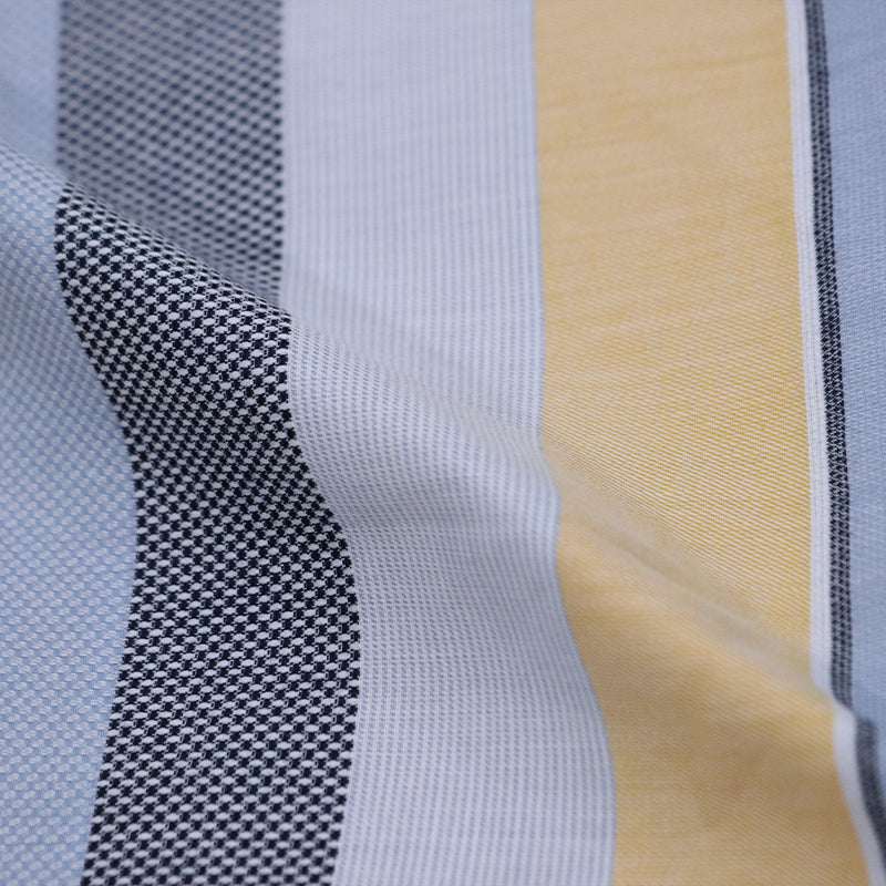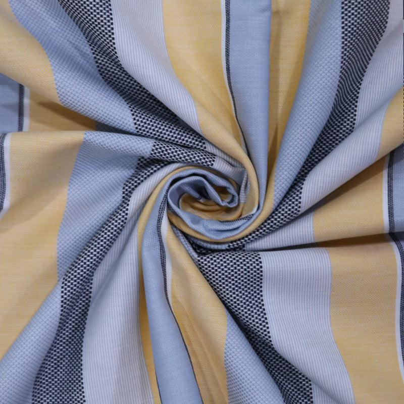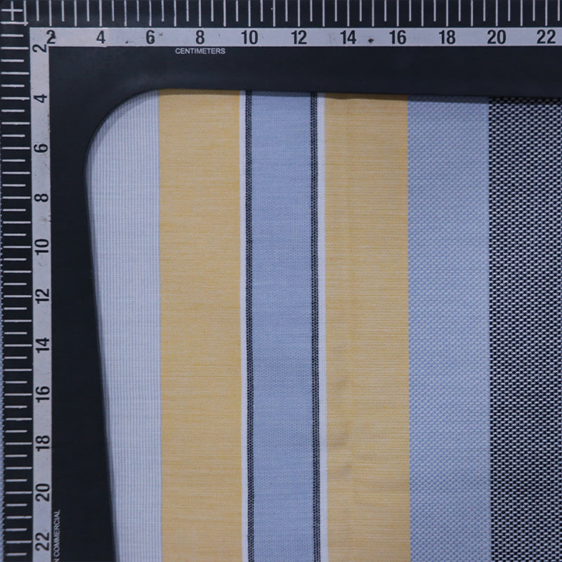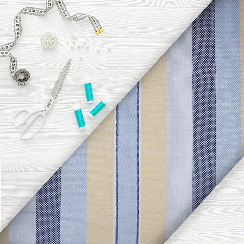 Blue And Beige Stripes Pattern Screen Print Cotton Fabric