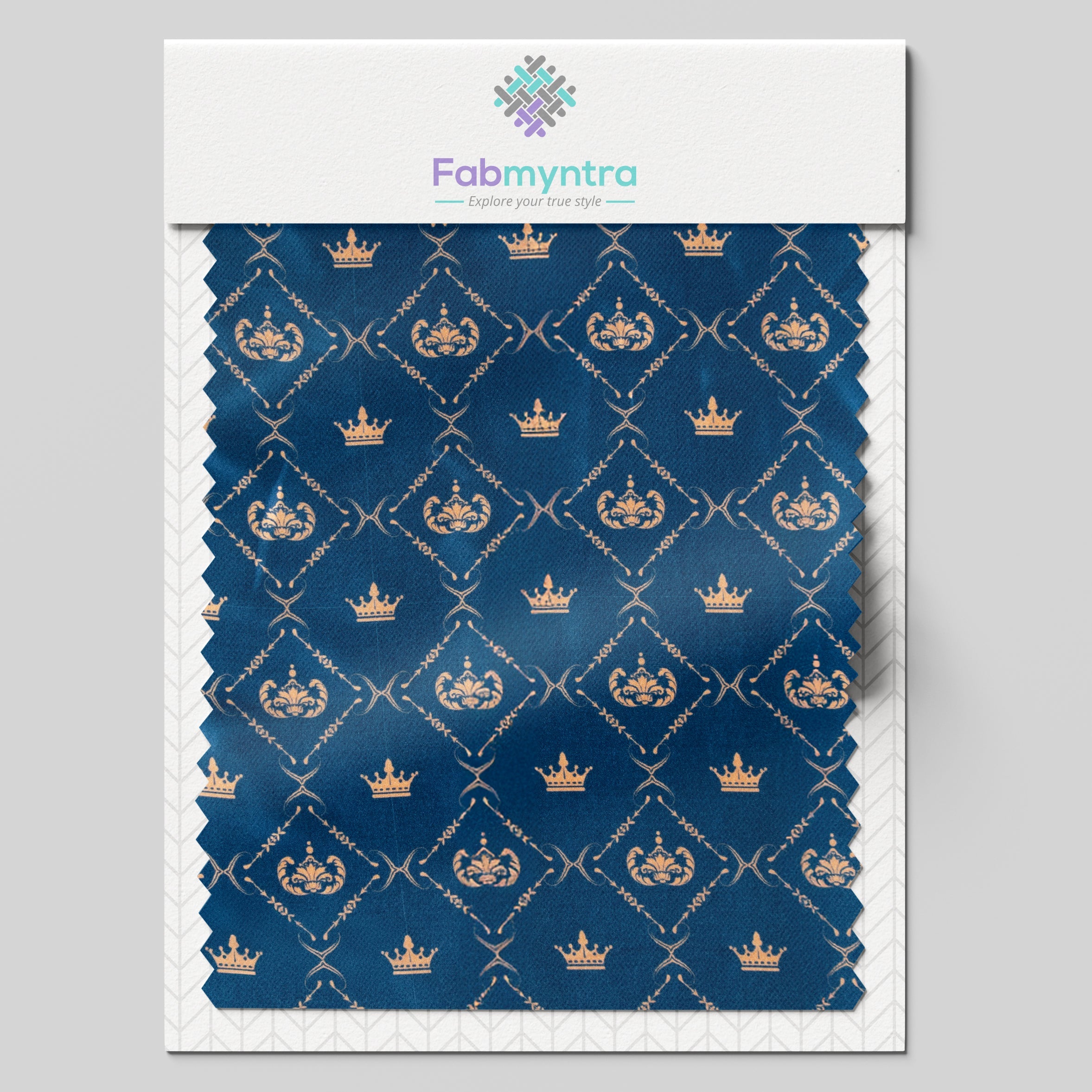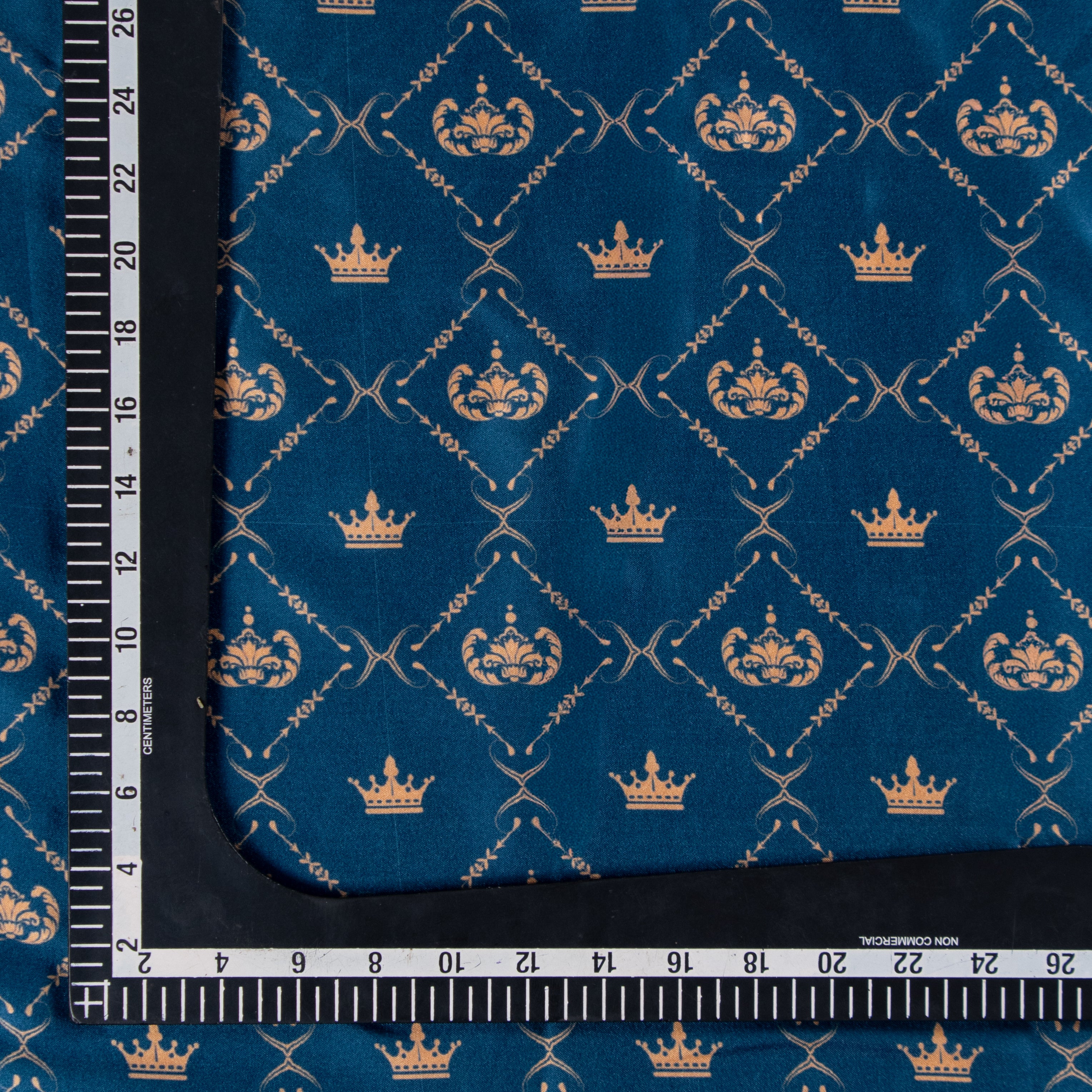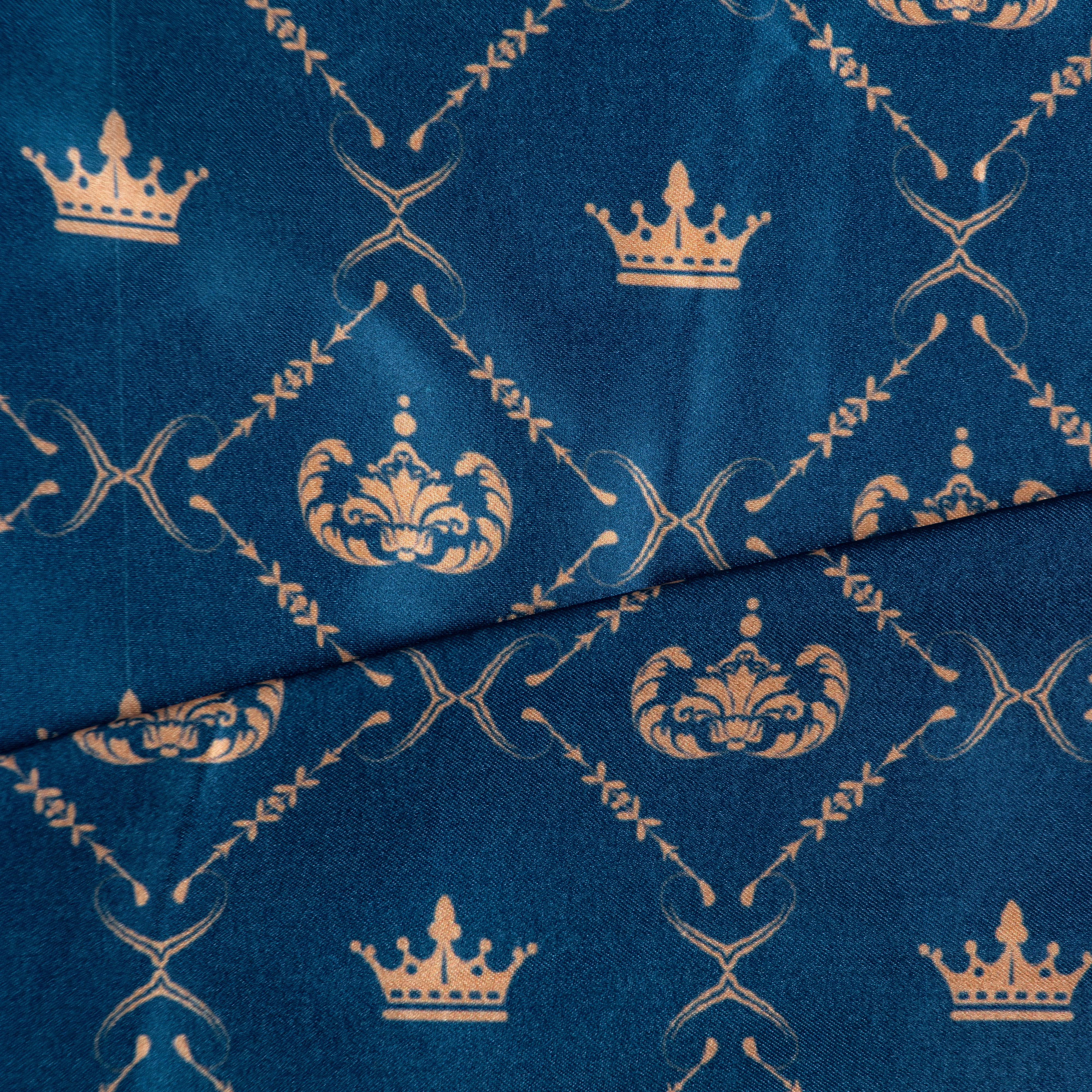 Blue And Gold Color Crown Pattern Digital Print Japan Satin Fabric
