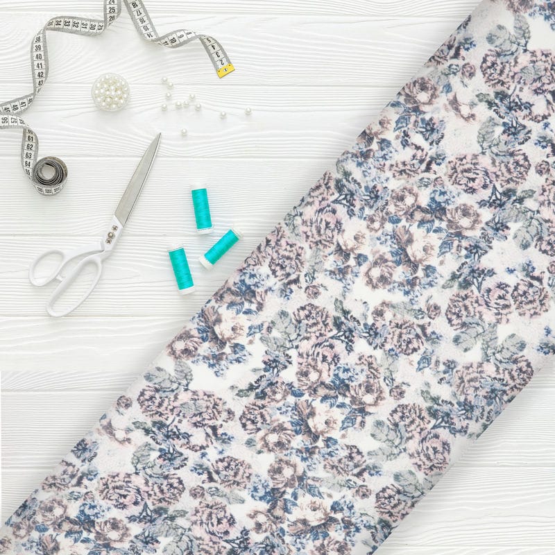 Blue And Grey Floral Pattern Digital Print Georgette Satin Fabric