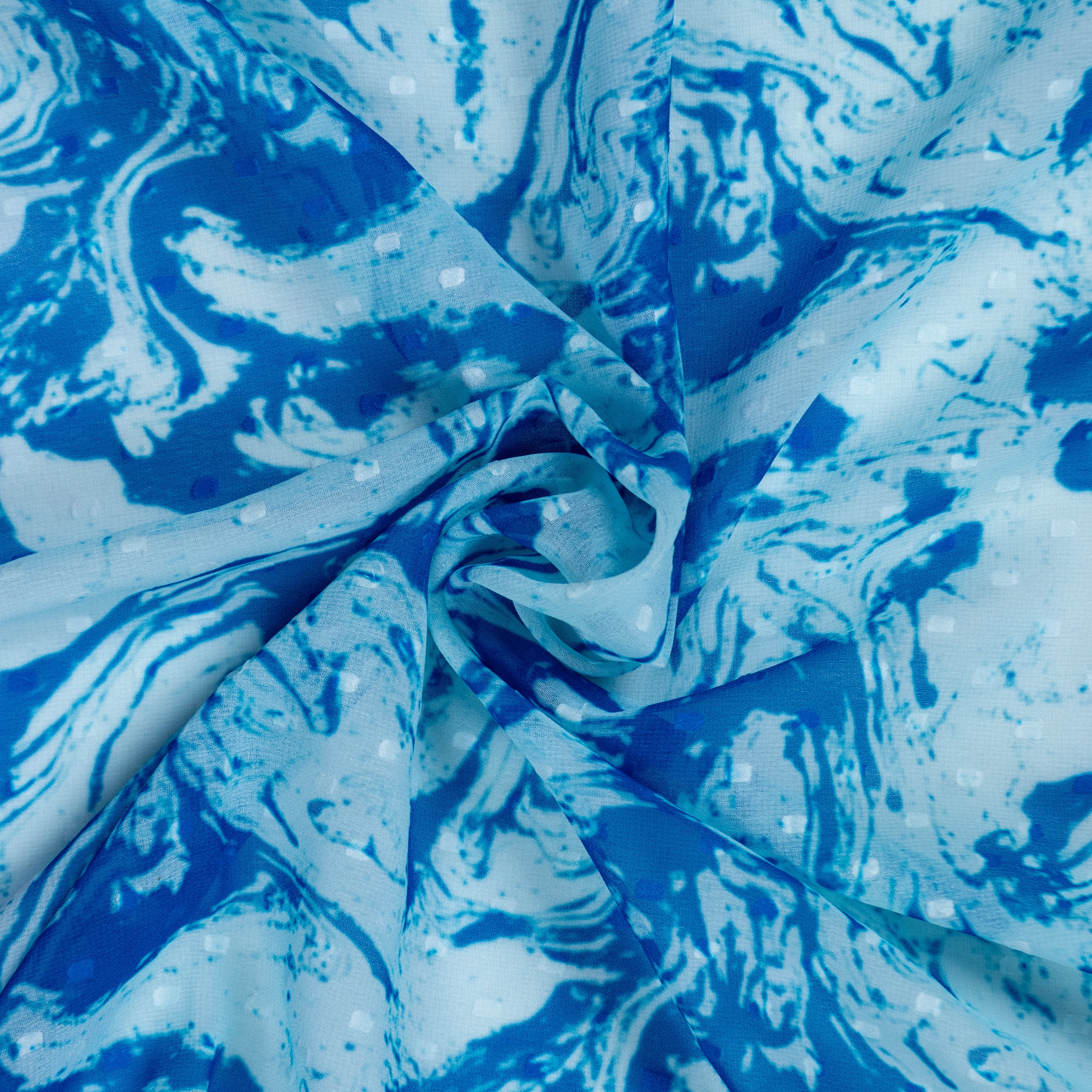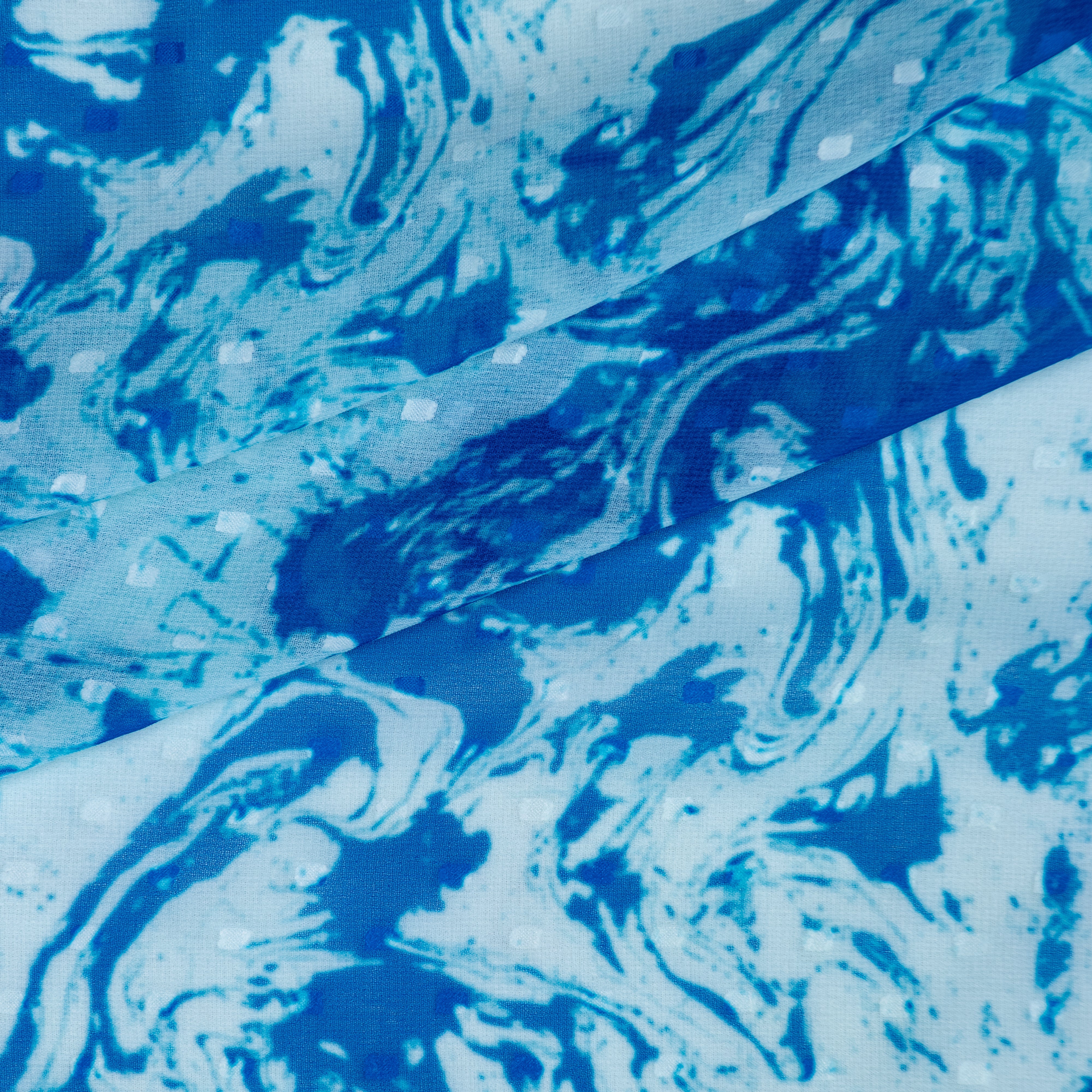 Blue and Ligh Blue Marble Pattern digital Print Georgette Dobby Fabric