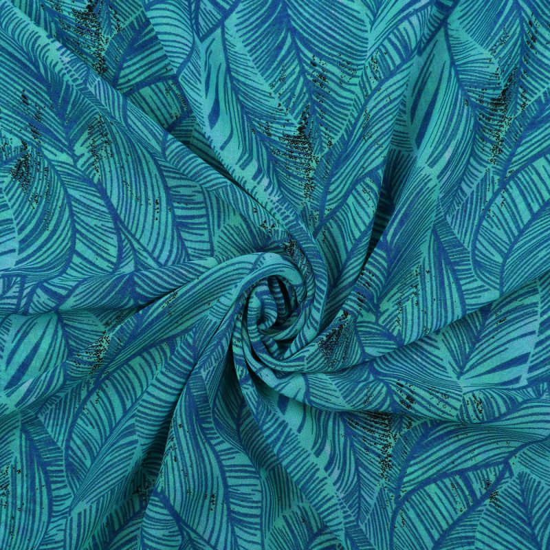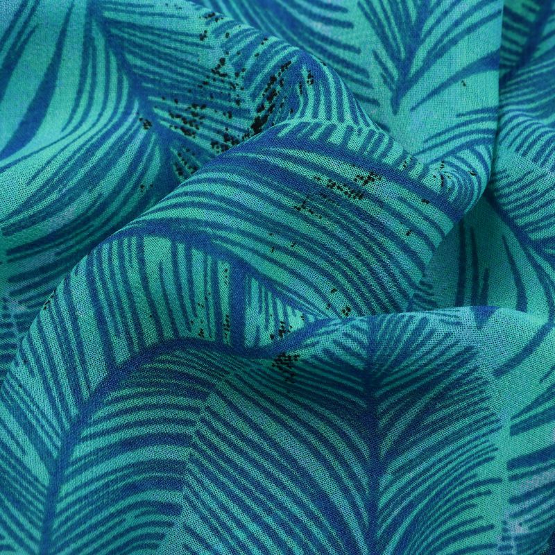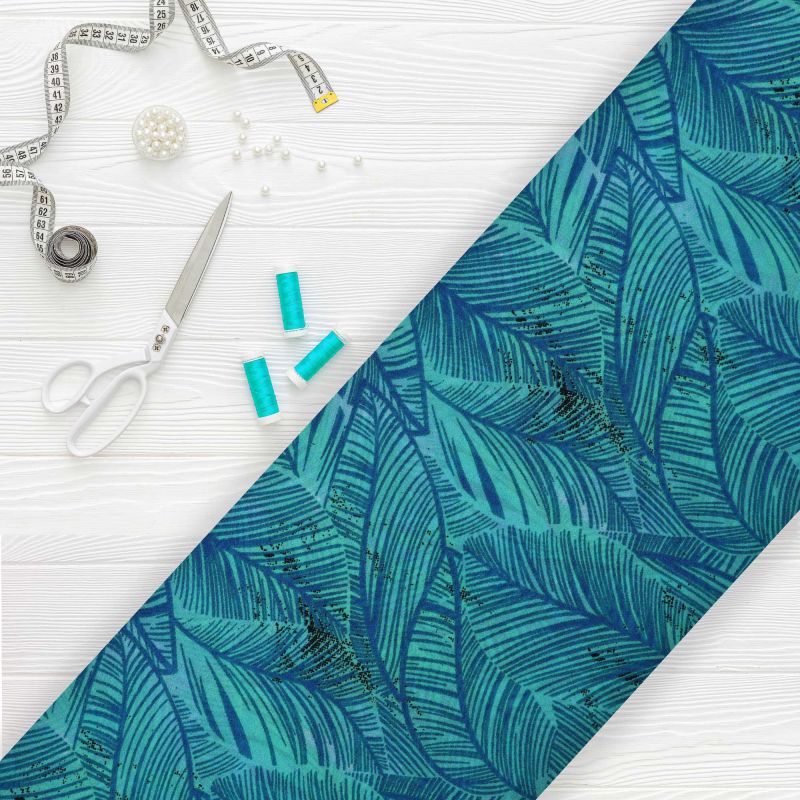Blue And Mint Green Tropical Pattern Screen Print Georgette Fabric
