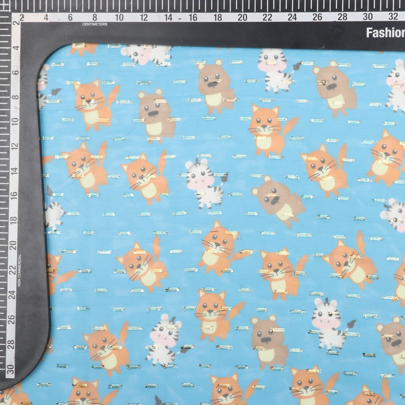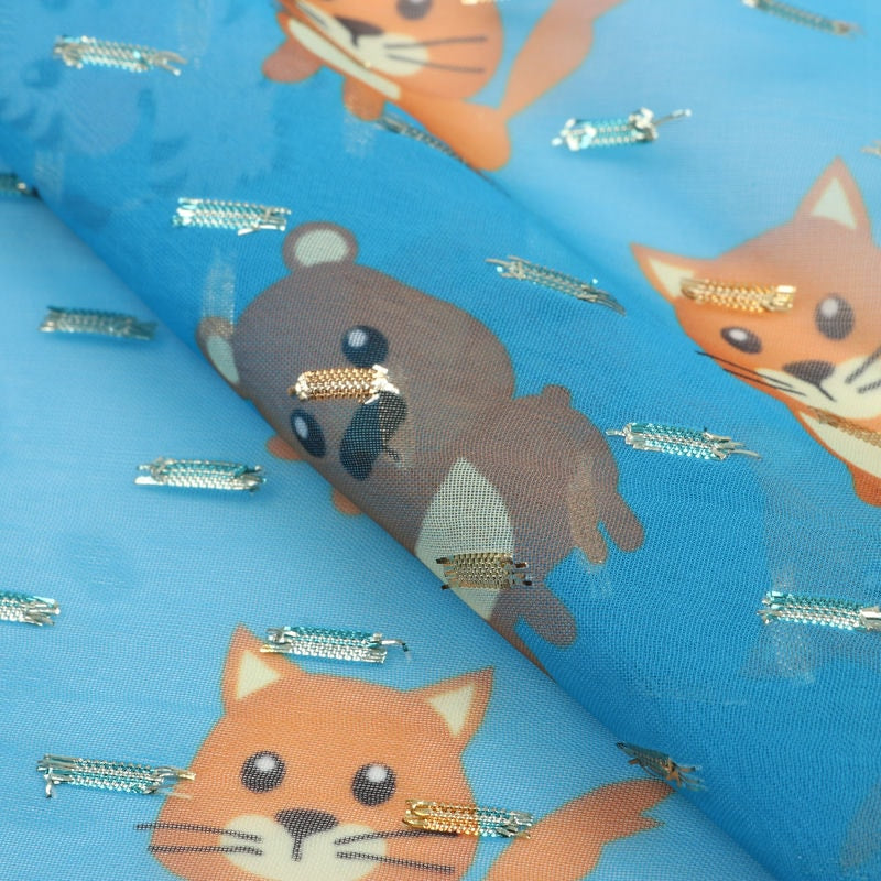 Blue And Orange Kids Pattern Digital Print Chiffon Golden Dobby Fabric