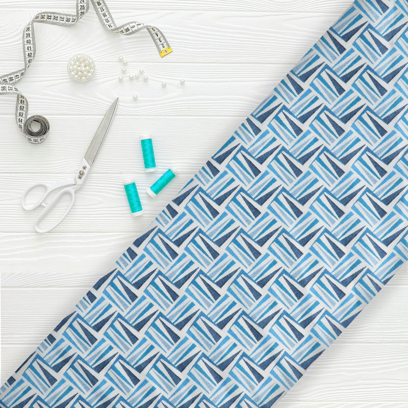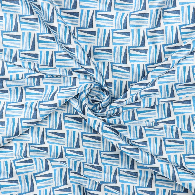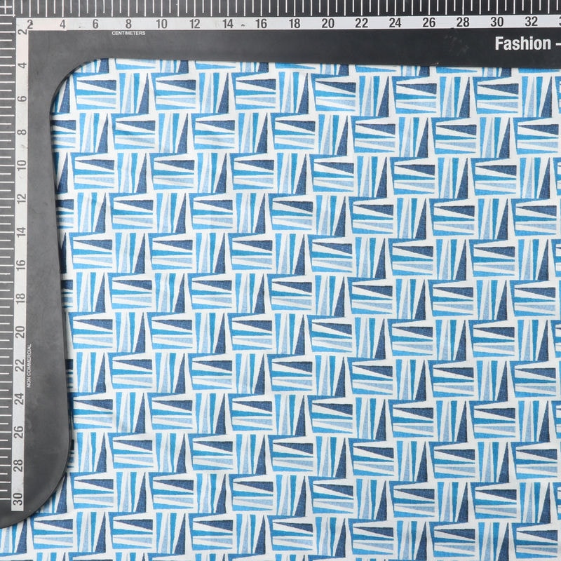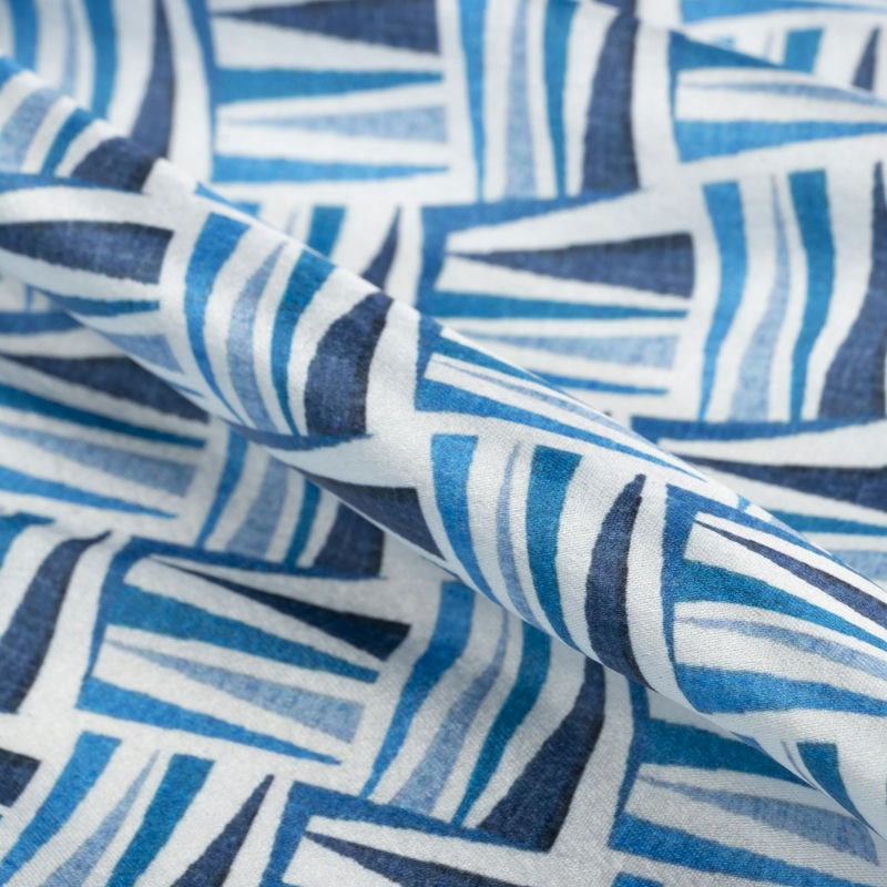 Blue And White Abstract Pattern Digital Print Japan Satin Fabric