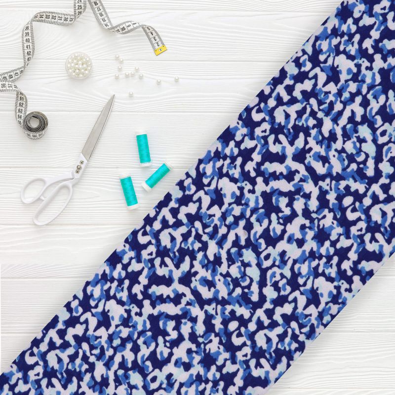 Blue And White Animal Pattern Screen Print Moss Crepe Fabric