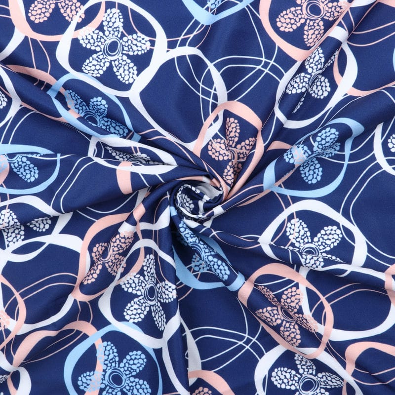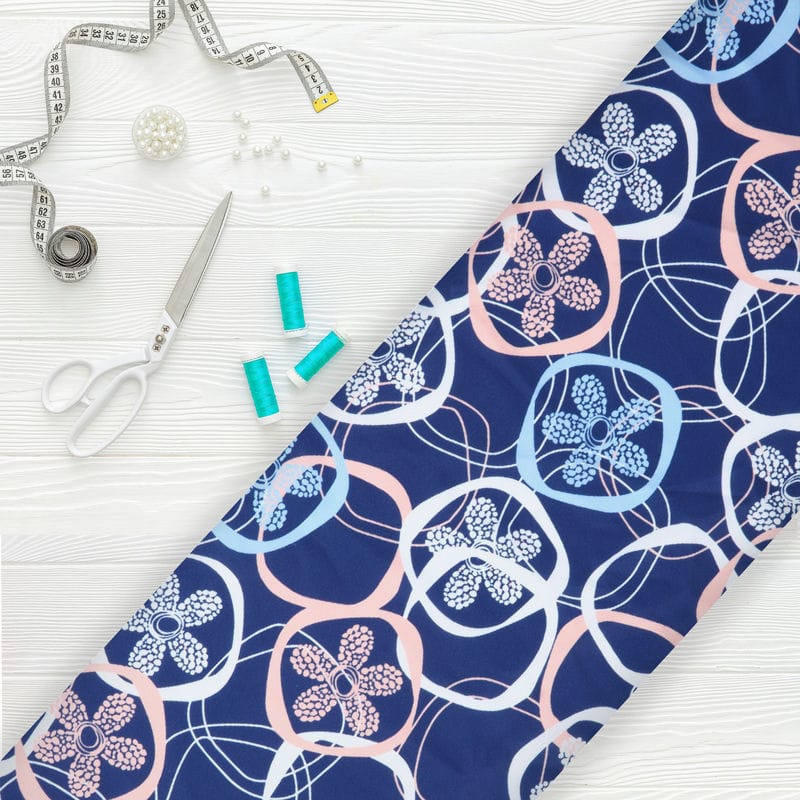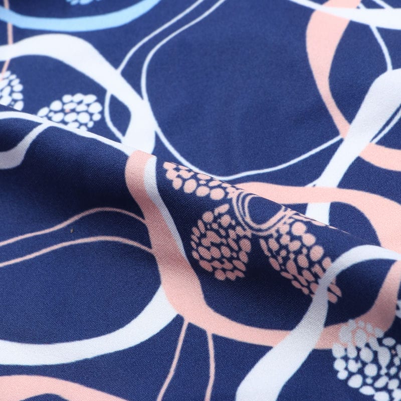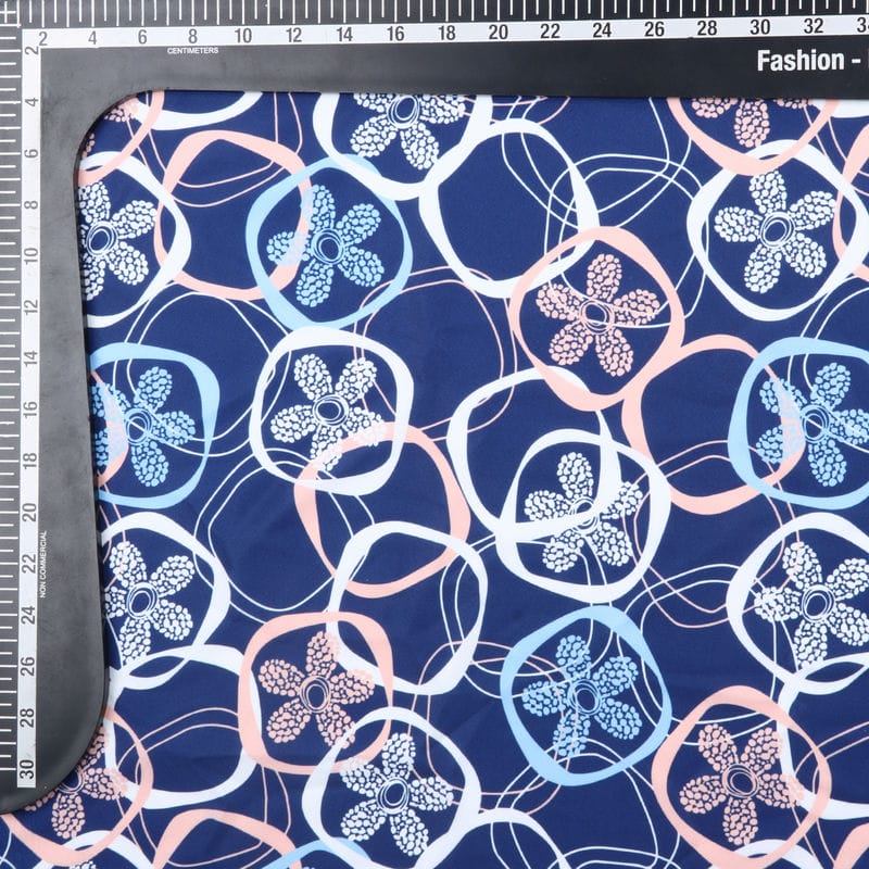 Blue And White Floral Pattern Digital Print Crepe Fabric